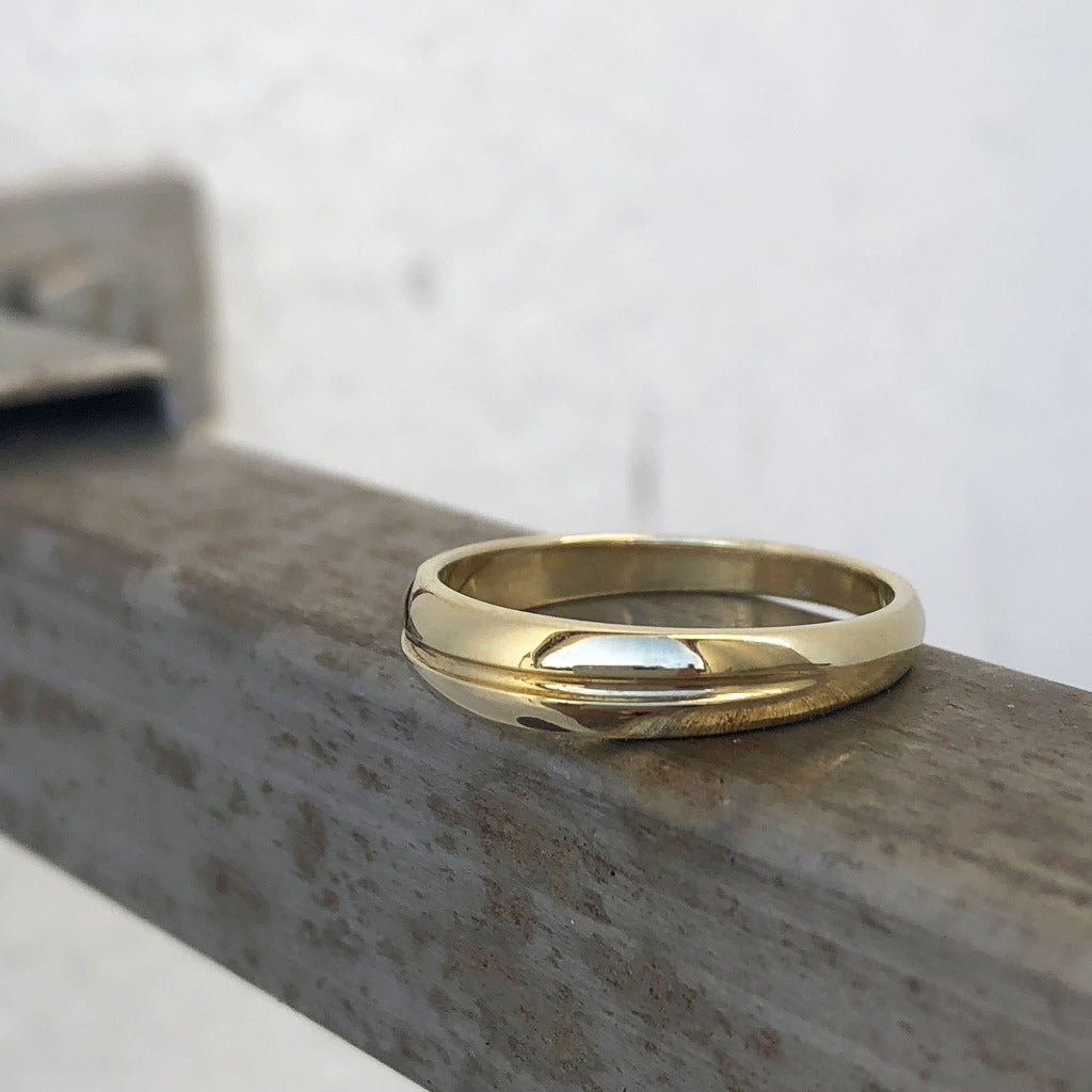 Tapered 9ct Yellow Gold Band with Groove Accent