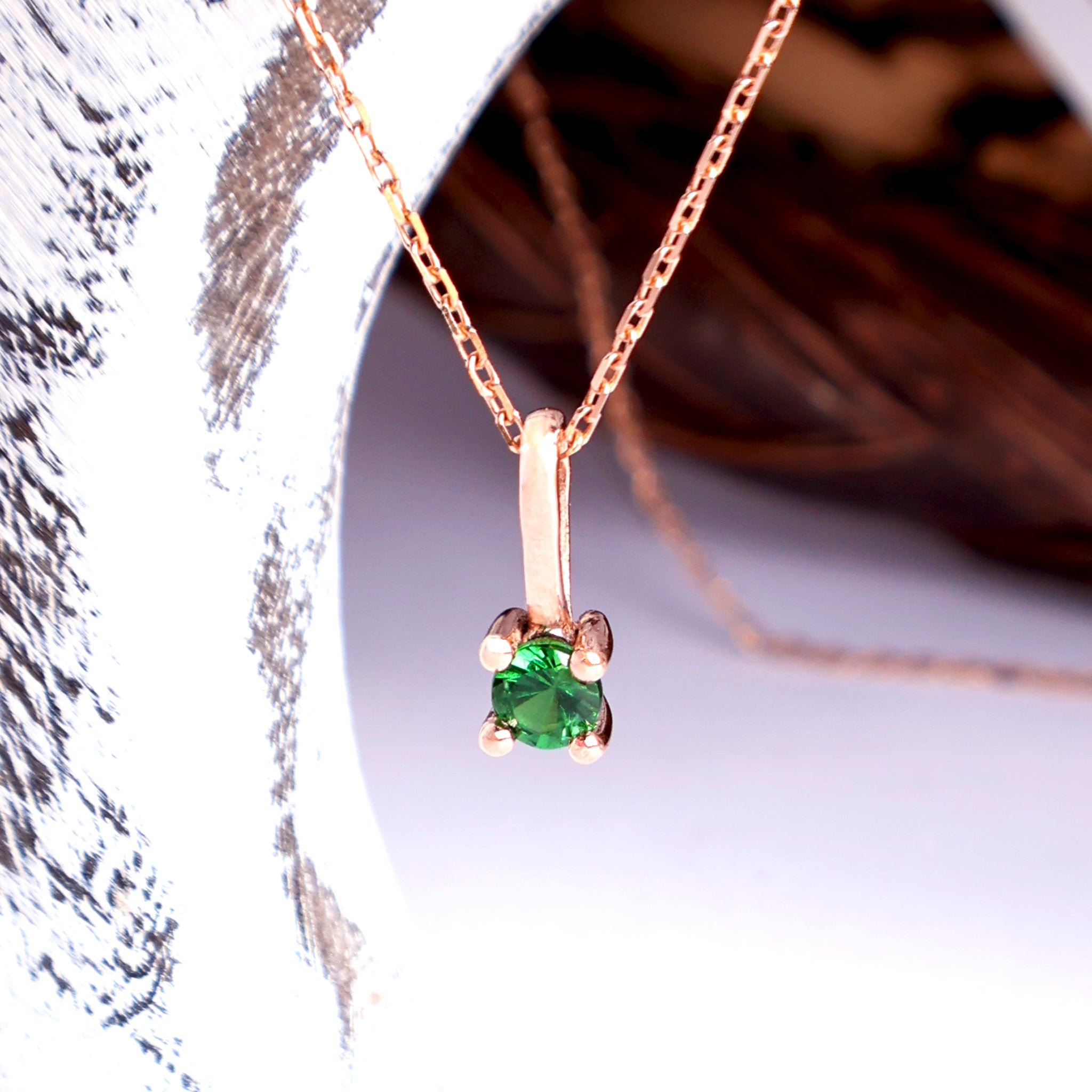 The Cutest Ever Fixed Bale Round Cut Tsavorite Rose Gold Pendant