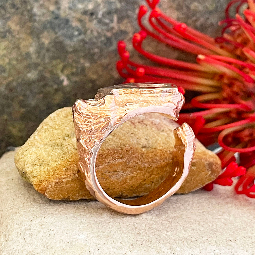 An extraordinary piece of design inspired by Cape Town’s most celebrated landmark. This unisex ring presents a sculptural, three-dimensional replica of Table Mountain in solid gold, its surface textured with a rich nugget finish.