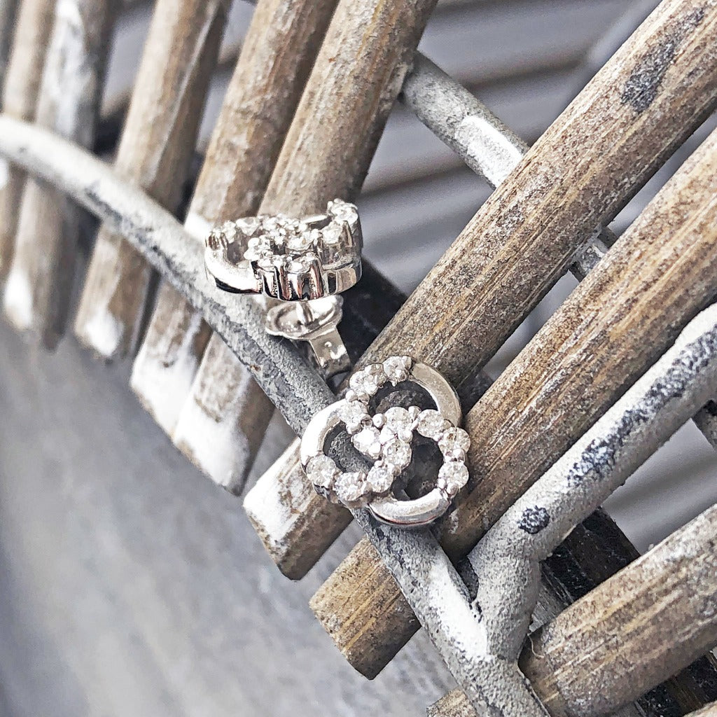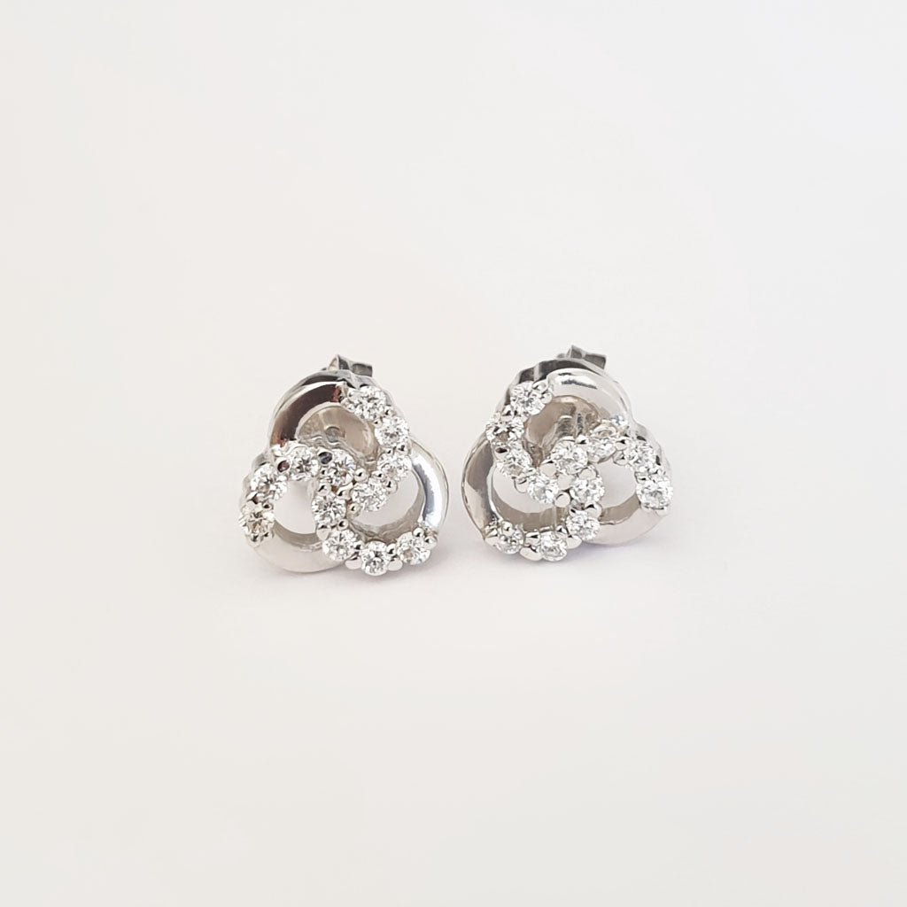 Three gleaming white gold circles interlace to create these beautiful earrings. Sparkling diamonds spiral from the center for exquisite detailing. They're an elegant and unusual pair with bucket loads of charm.