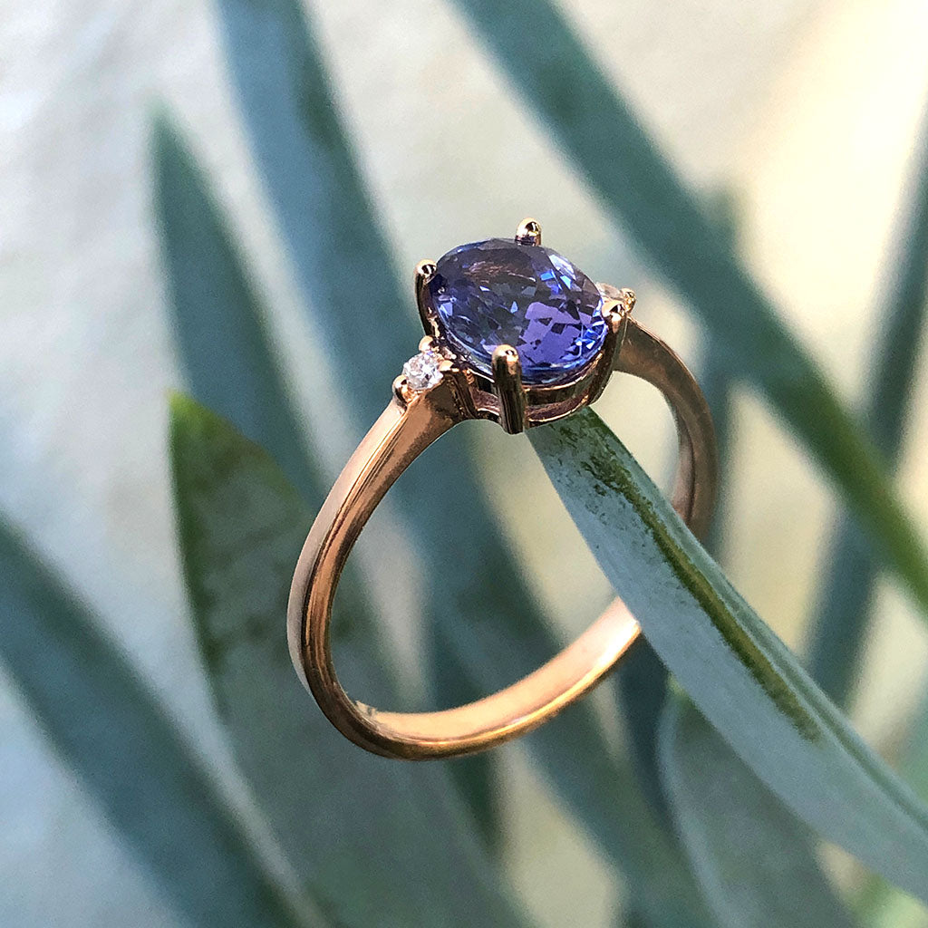Elegant Oval Tanzanite and Petite Diamond Accent Rose Gold Ring