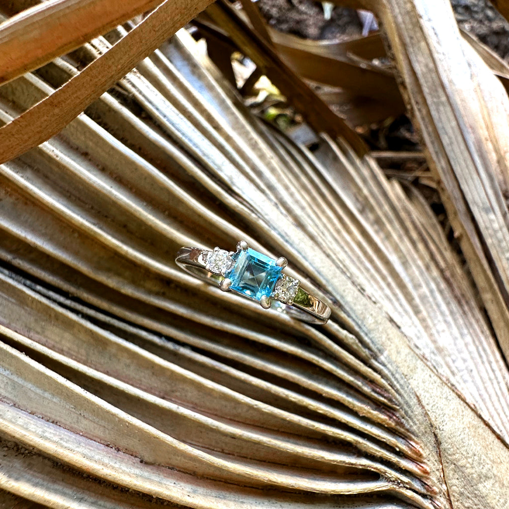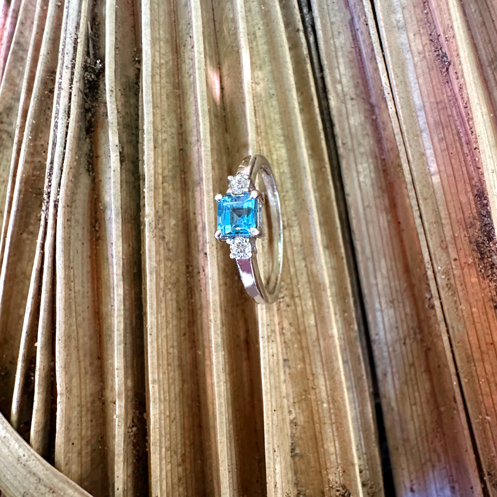 Timeless Square Cut Blue Topaz With Diamond Accent Ring