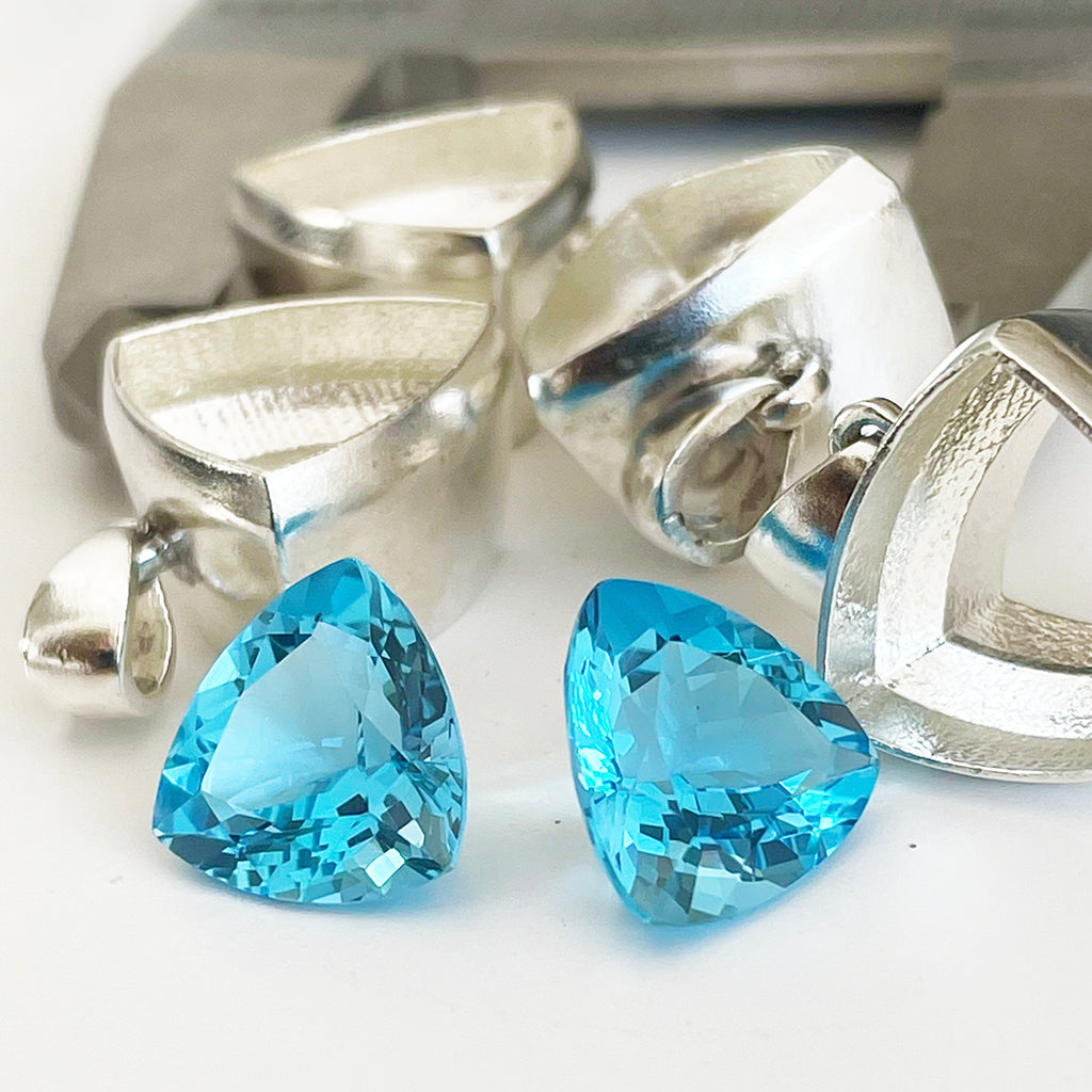 Topaz - Blue Trilliant Cut Pair - 13.15ct