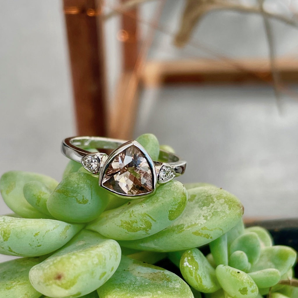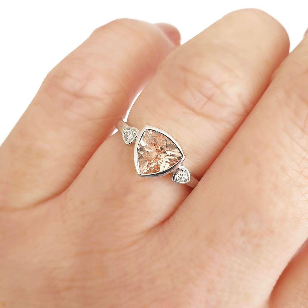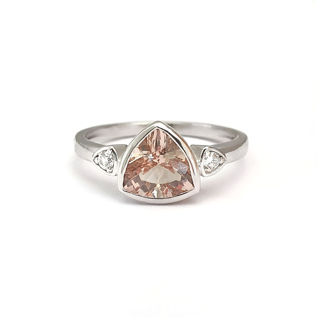 Trilliant Cut Bezel Set Morganite and Diamond Highlight Ring