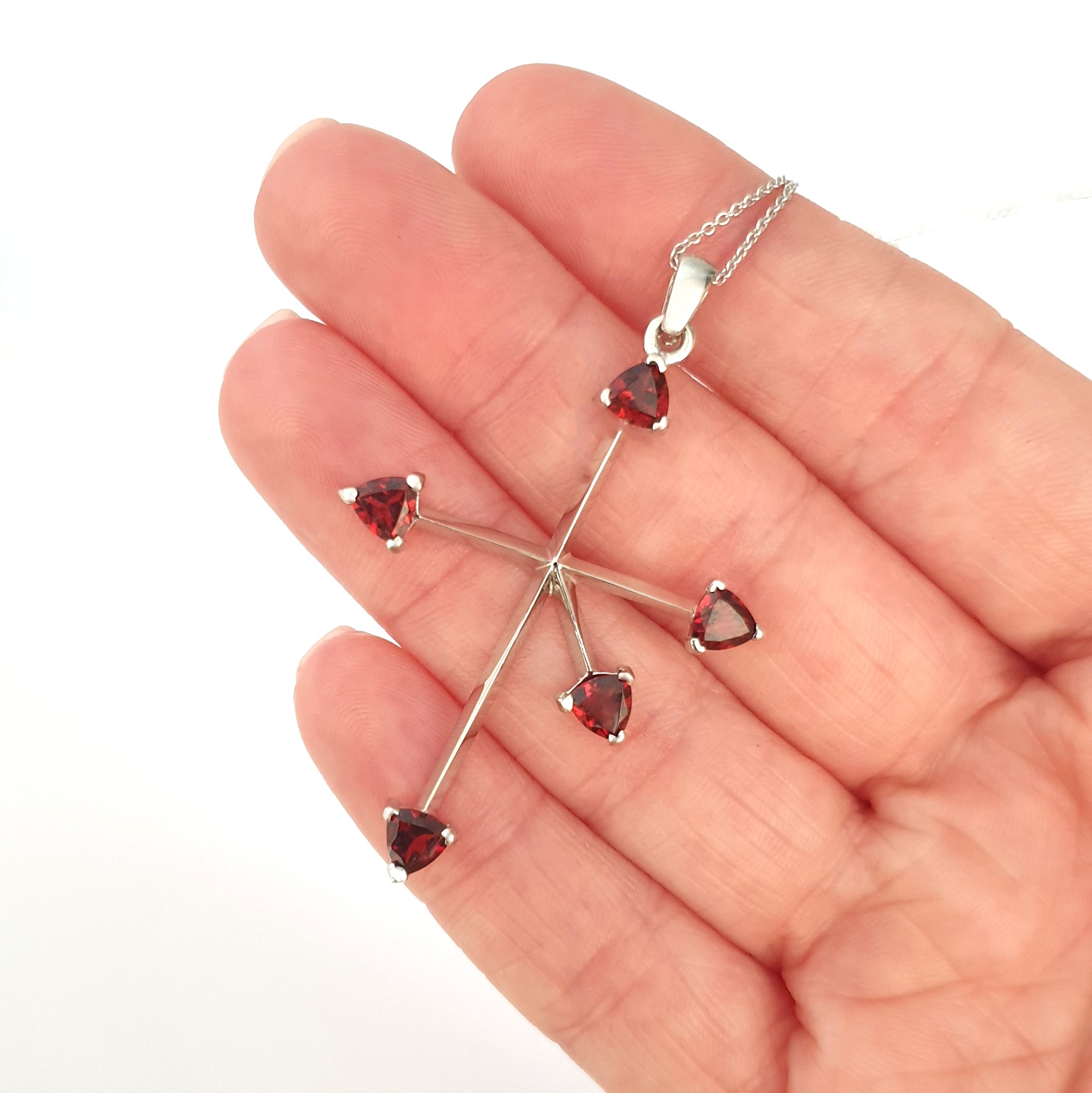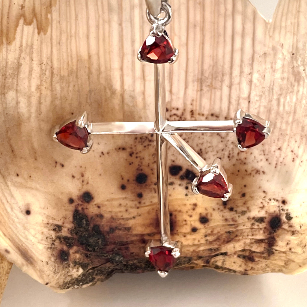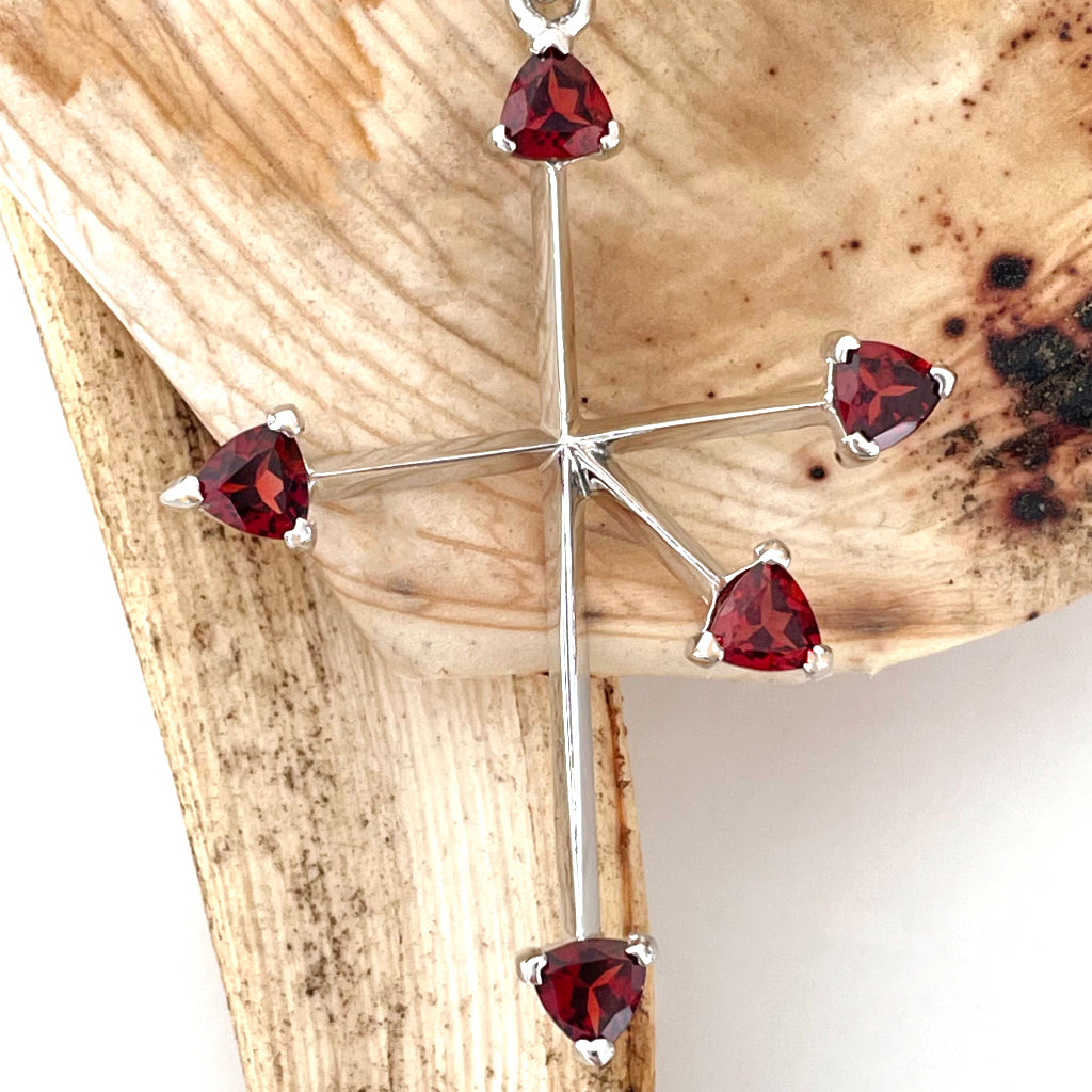Trilliant Red Garnet and White Gold Southern Cross Pendant