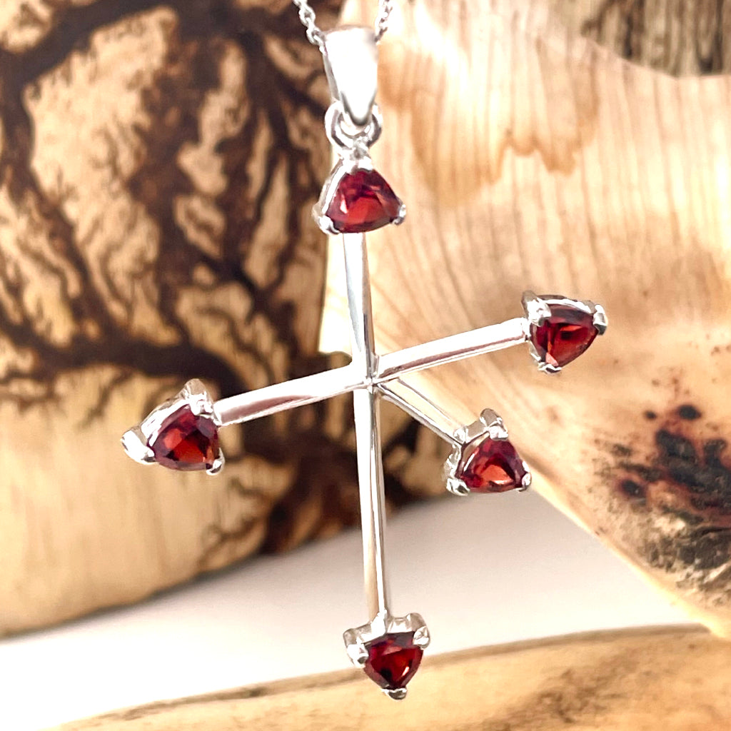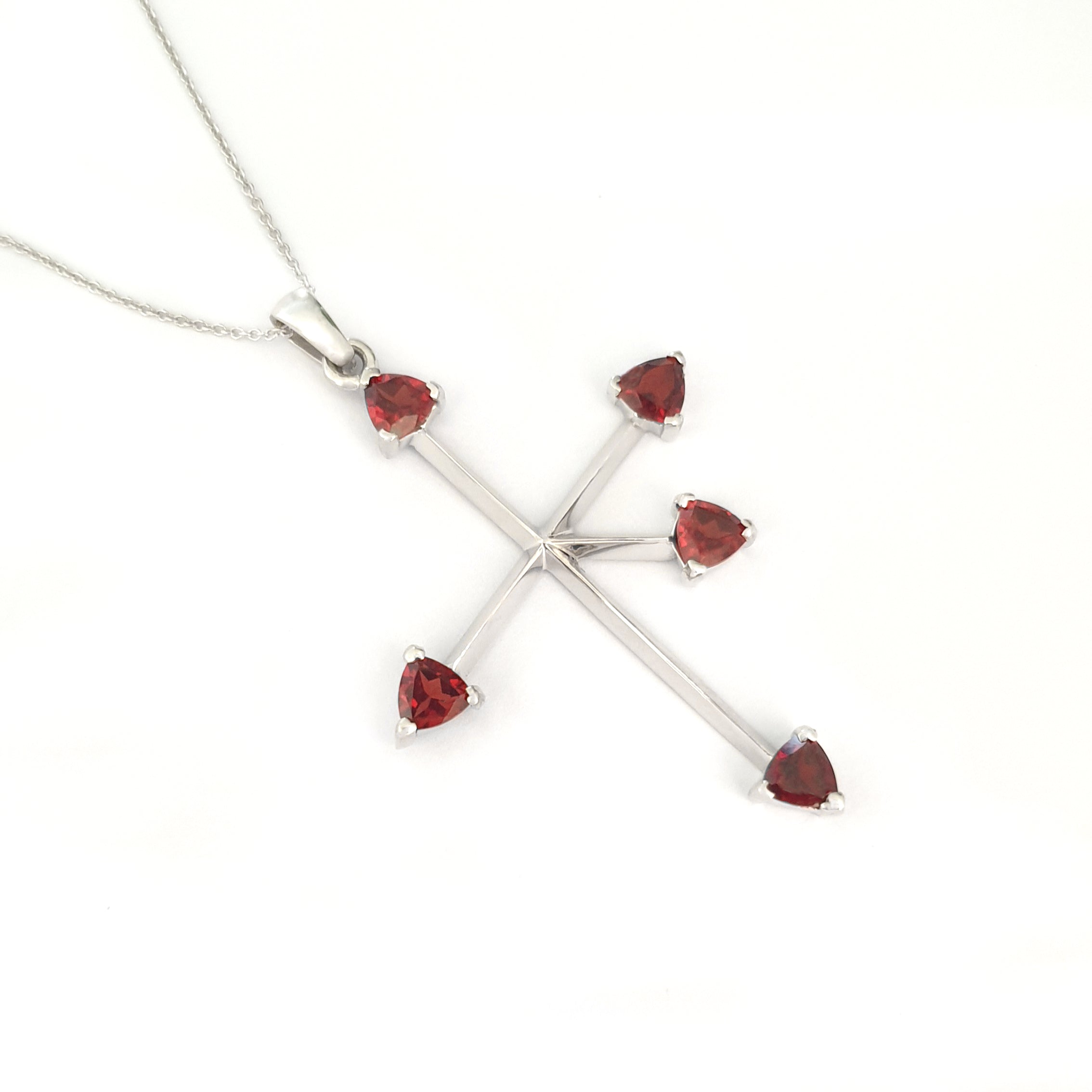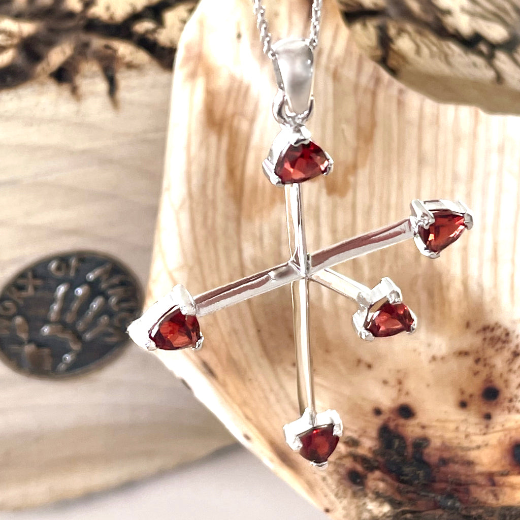 Trilliant Red Garnet and White Gold Southern Cross Pendant