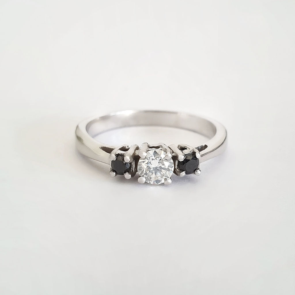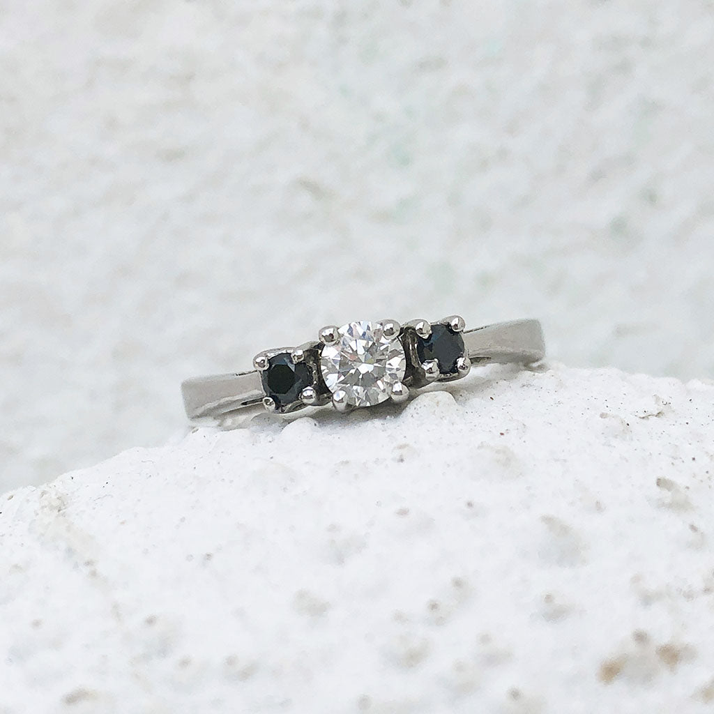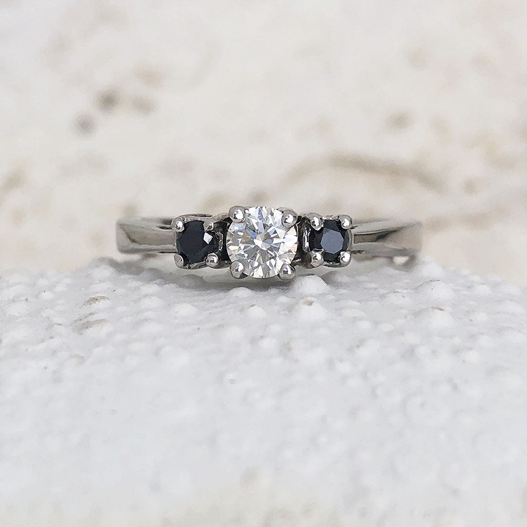 Trilogy Center White Diamond Ring with Black Diamond Accents