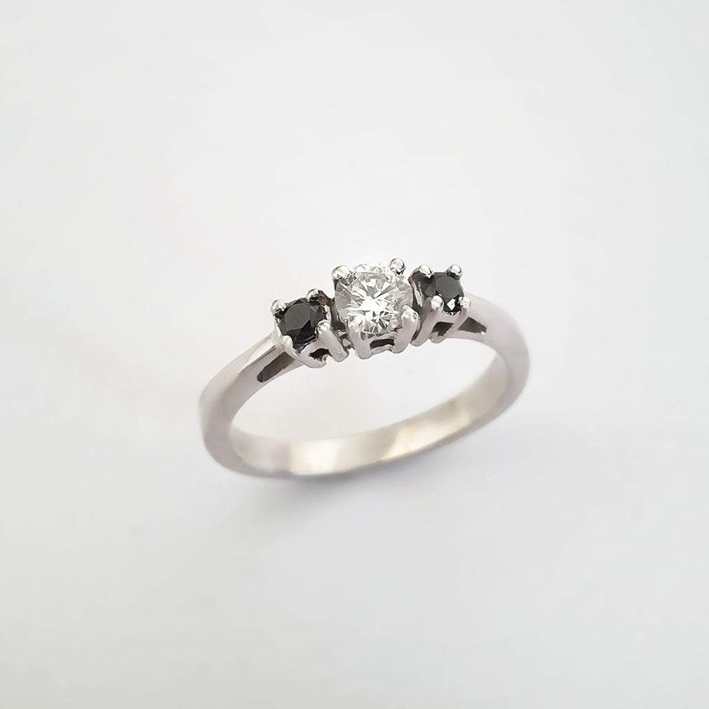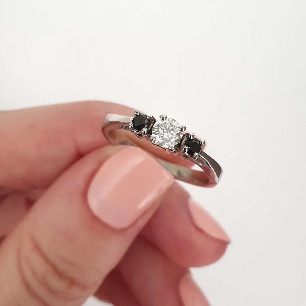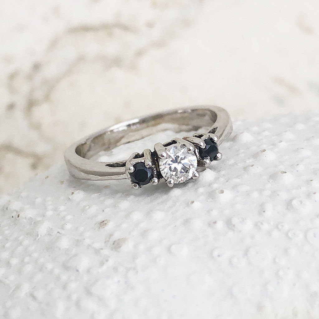 Trilogy Center White Diamond Ring with Black Diamond Accents