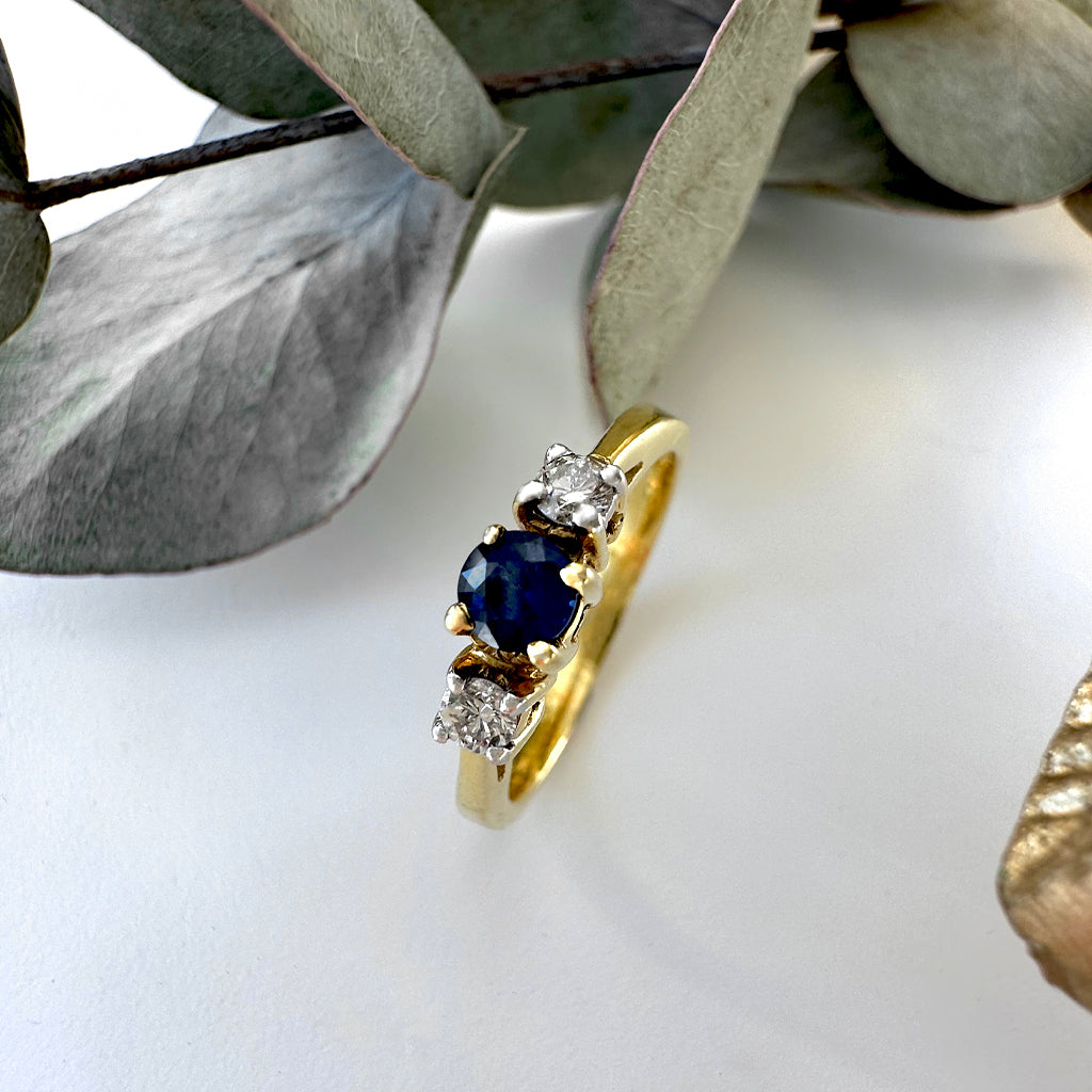 Trilogy Center Sapphire Ring with White Diamond Accents