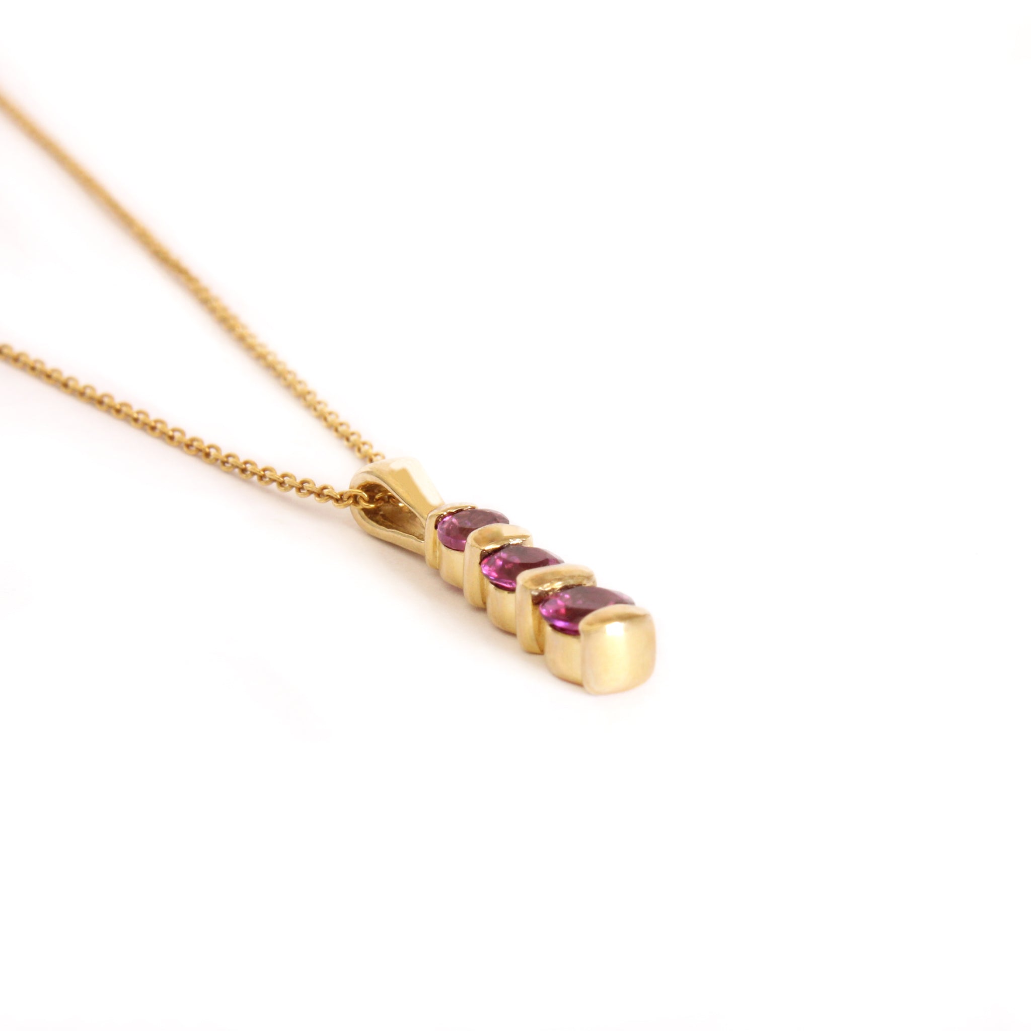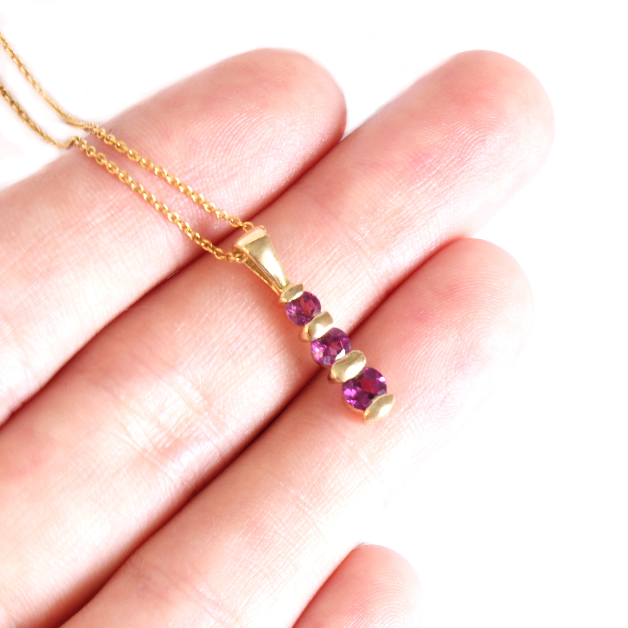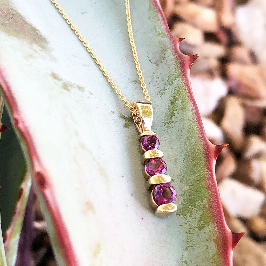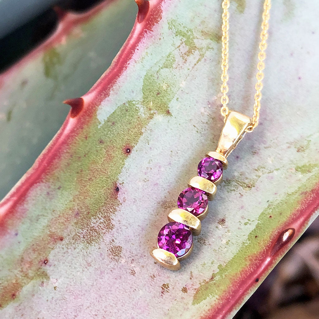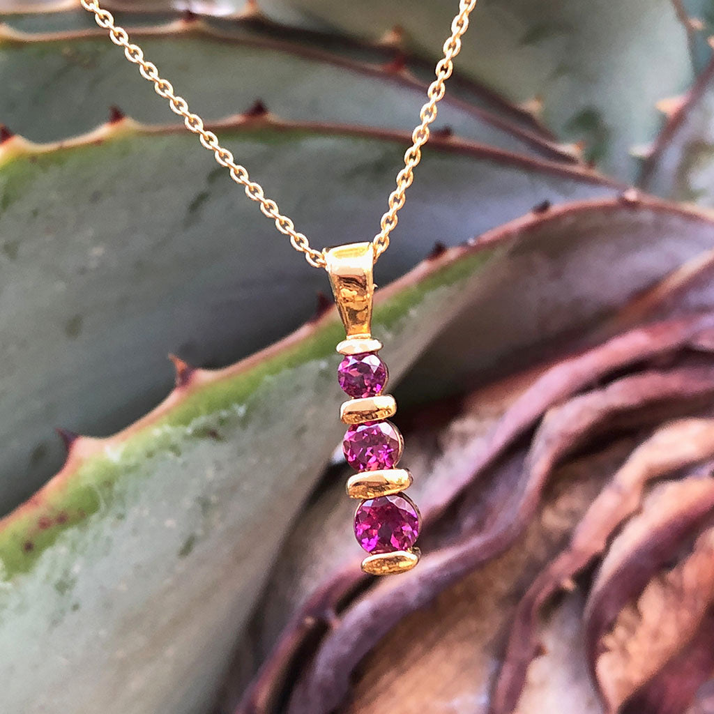 Trilogy Round Cut Rhodalite Bar Set Drop Pendant