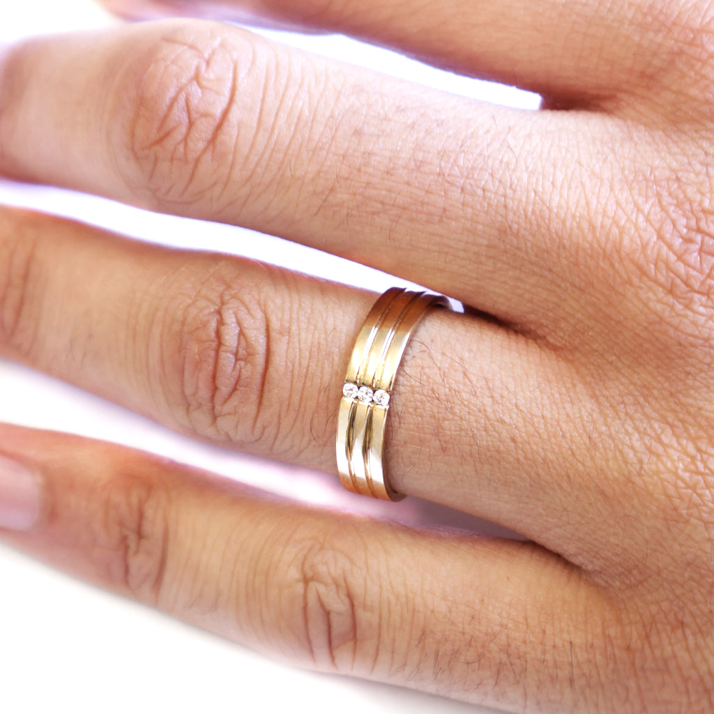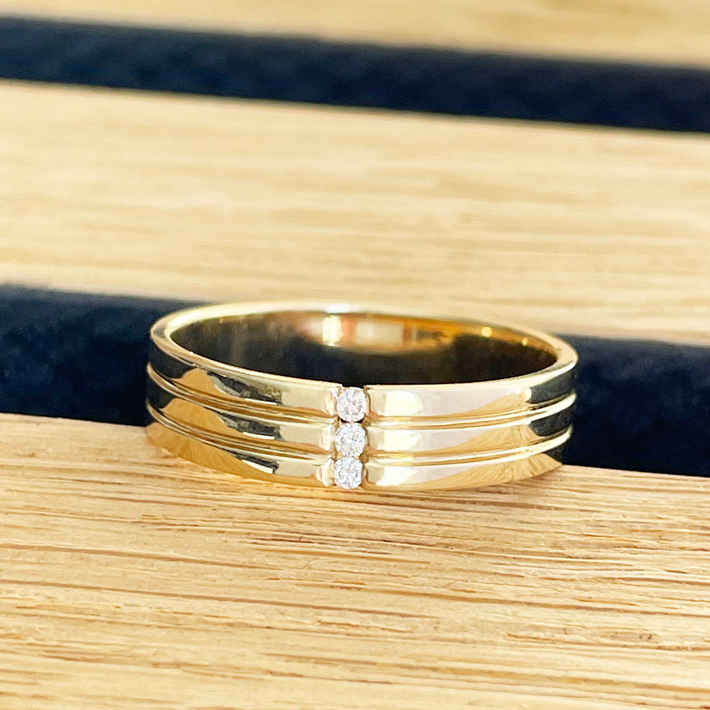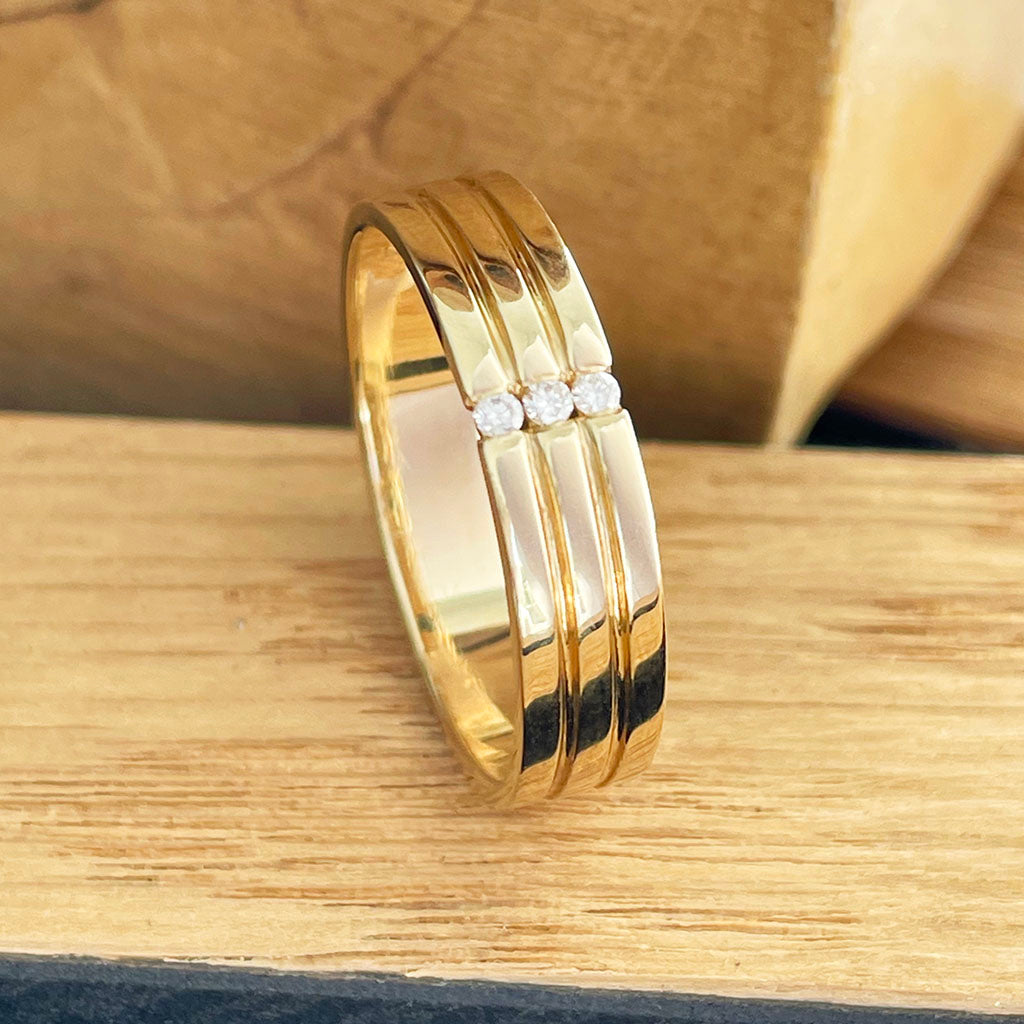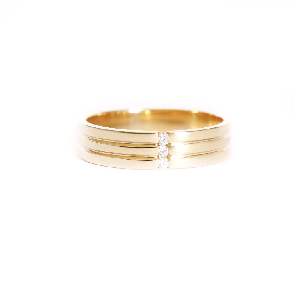 Triple Groove Trilogy Diamond Yellow Gold Band