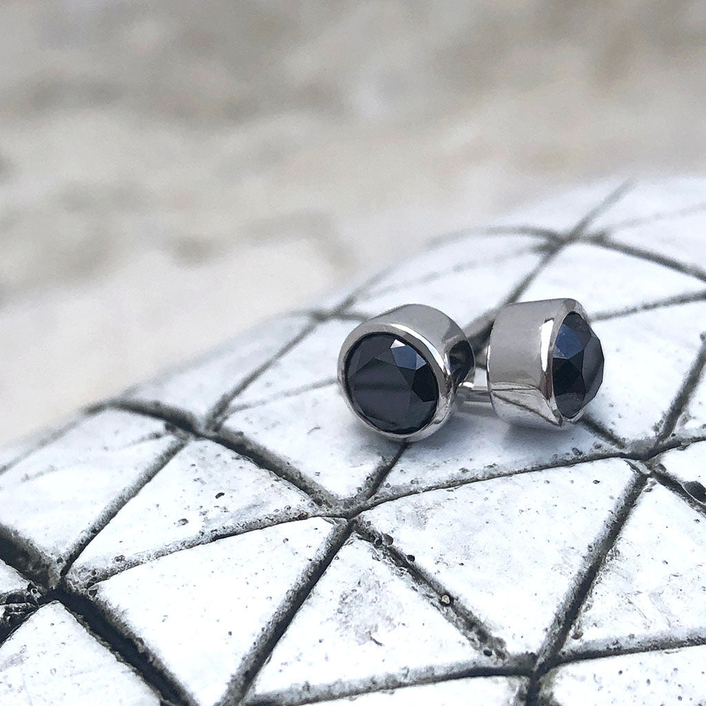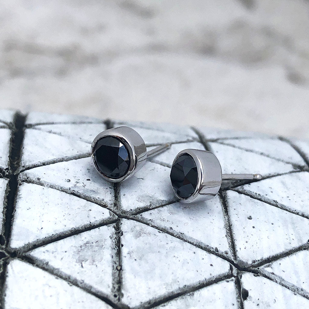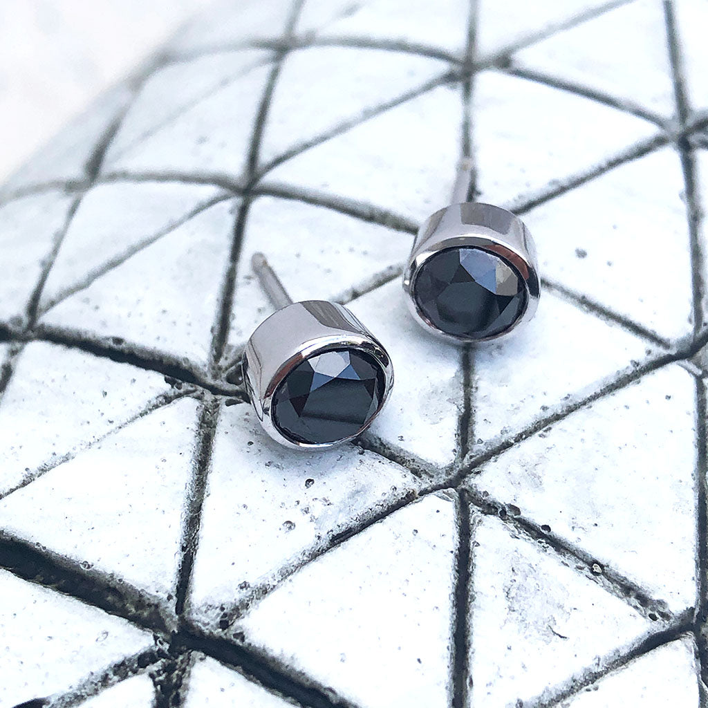 Stud earrings are a wardrobe staple, but sometimes you need a twist on a classic. This contemporary riff bends the rules with lustrous solitaire black diamonds tube set in white gold. The send a message that you're an original, and even your classic staples have a unique story to tell.