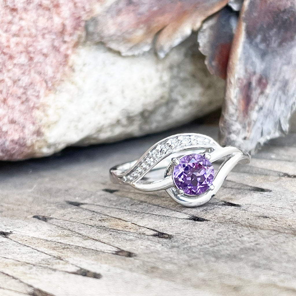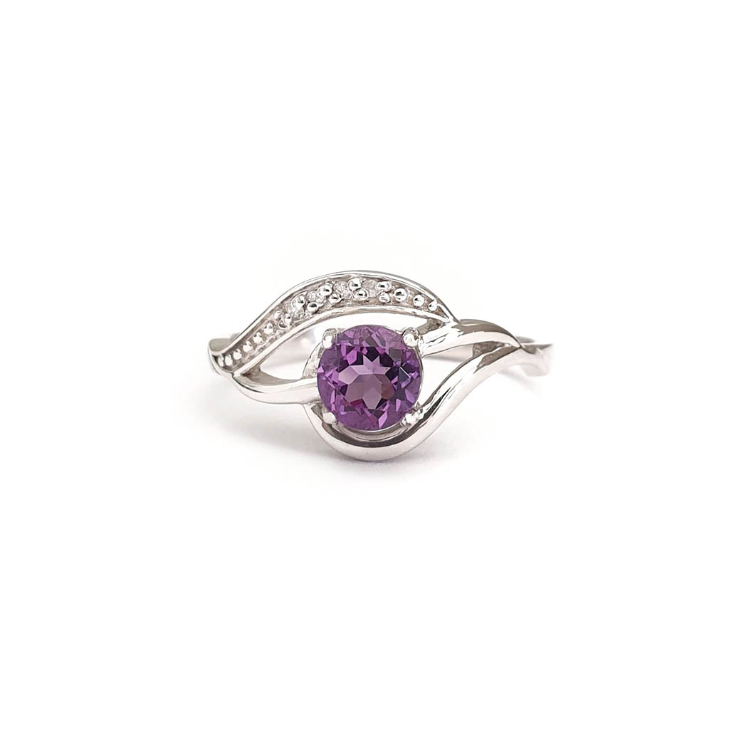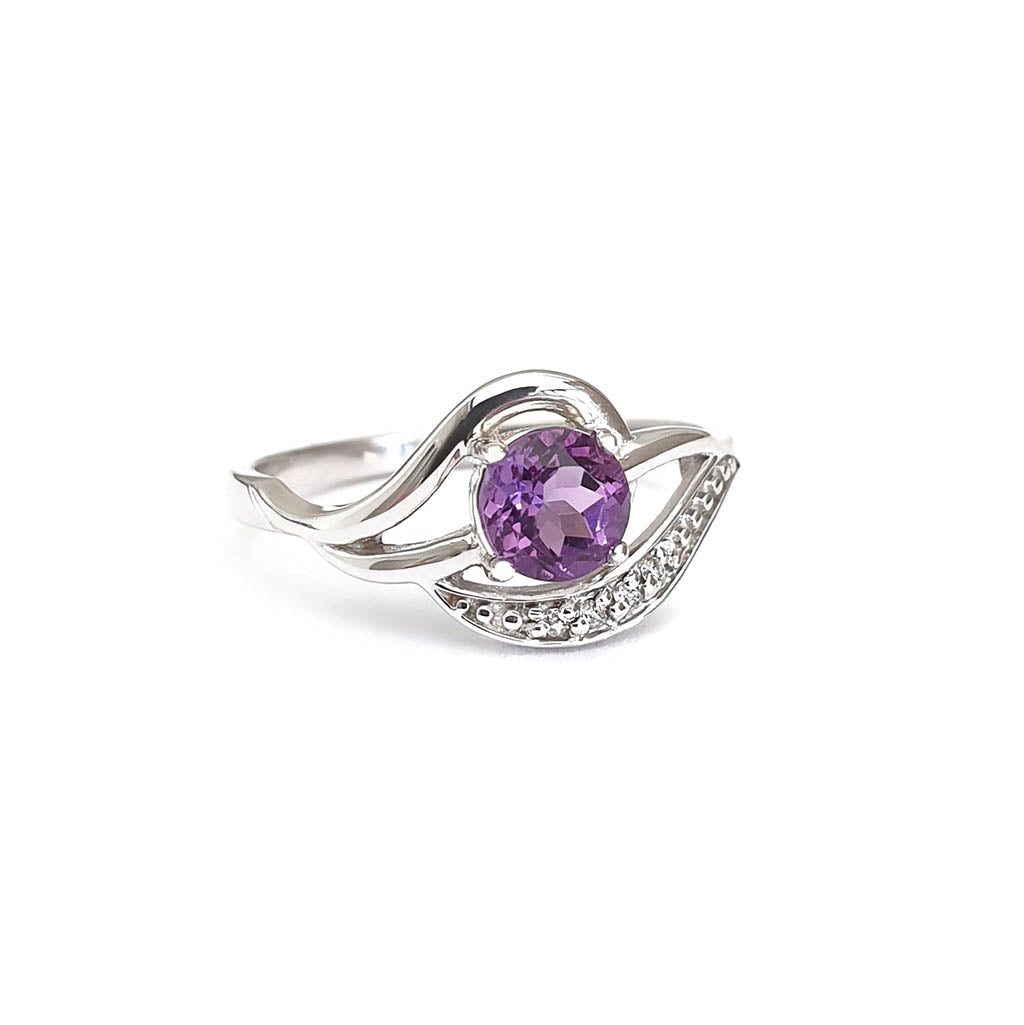 Unique Amethyst and Diamond Wave White Gold Ring