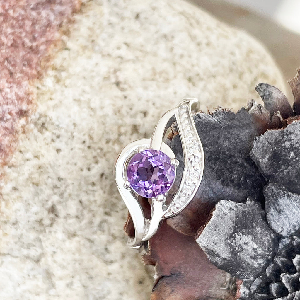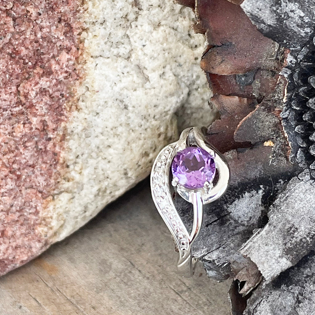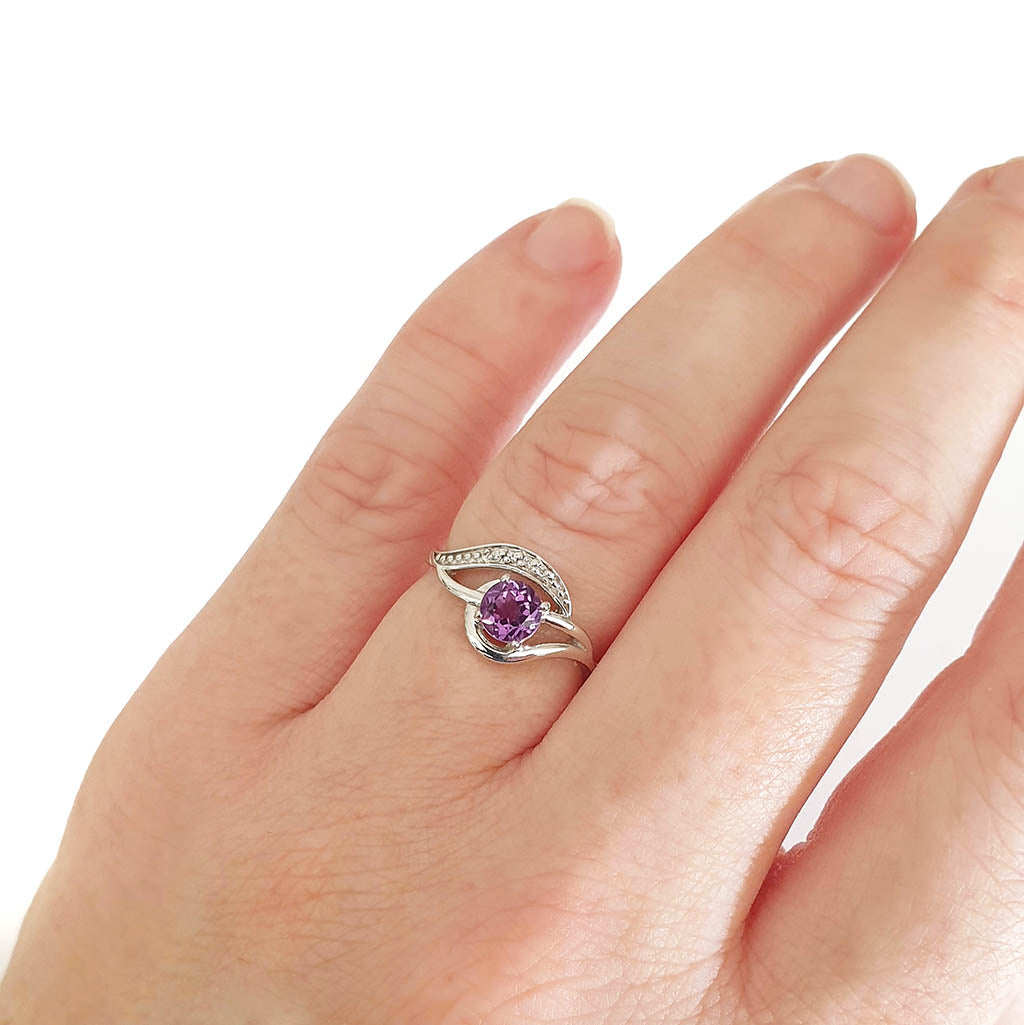 Unique Amethyst and Diamond Wave White Gold Ring