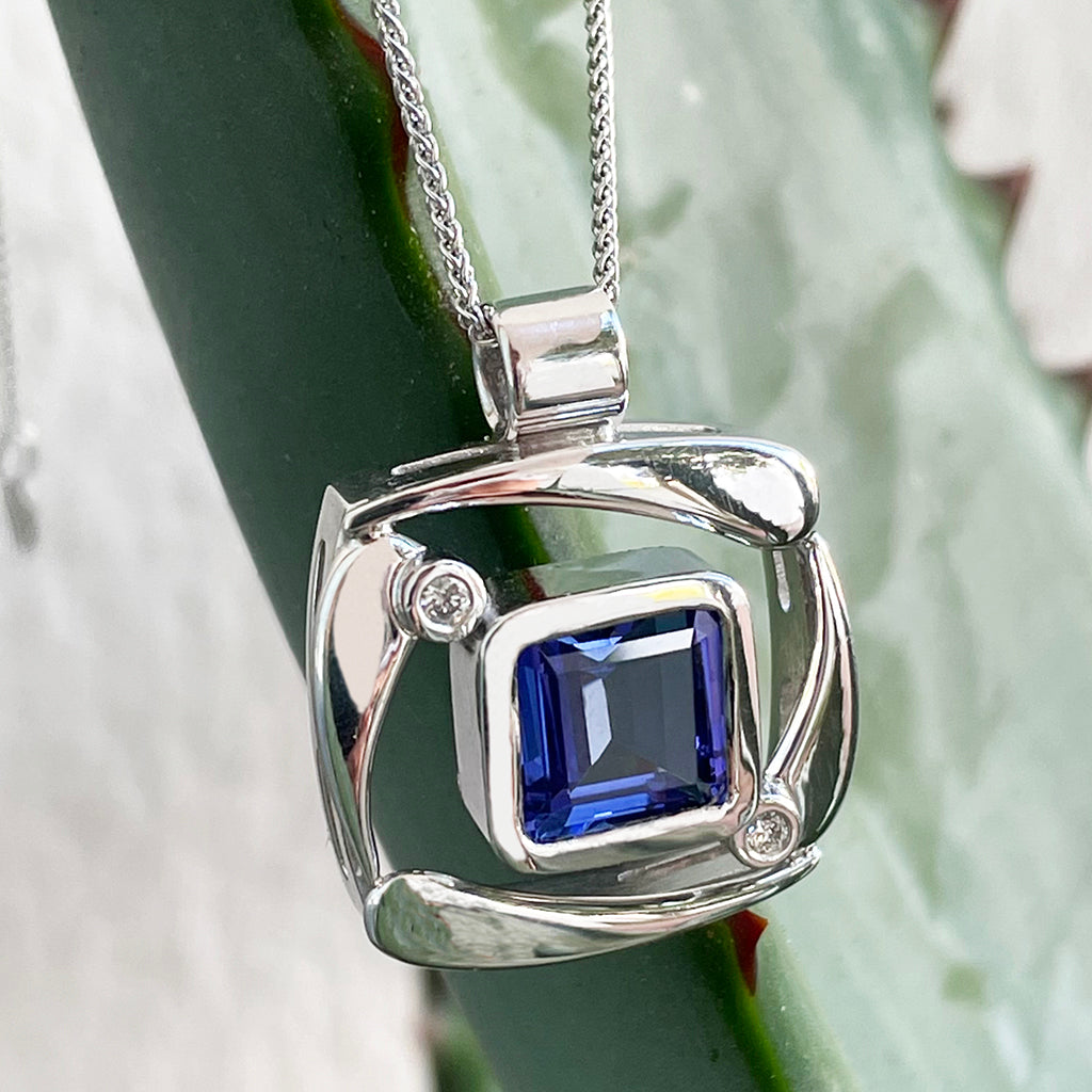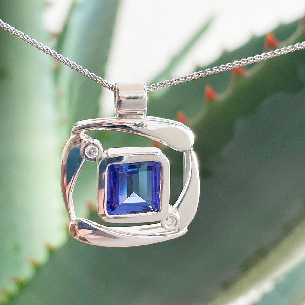 Unique Handcrafted Tanzanite and Diamond Pendant