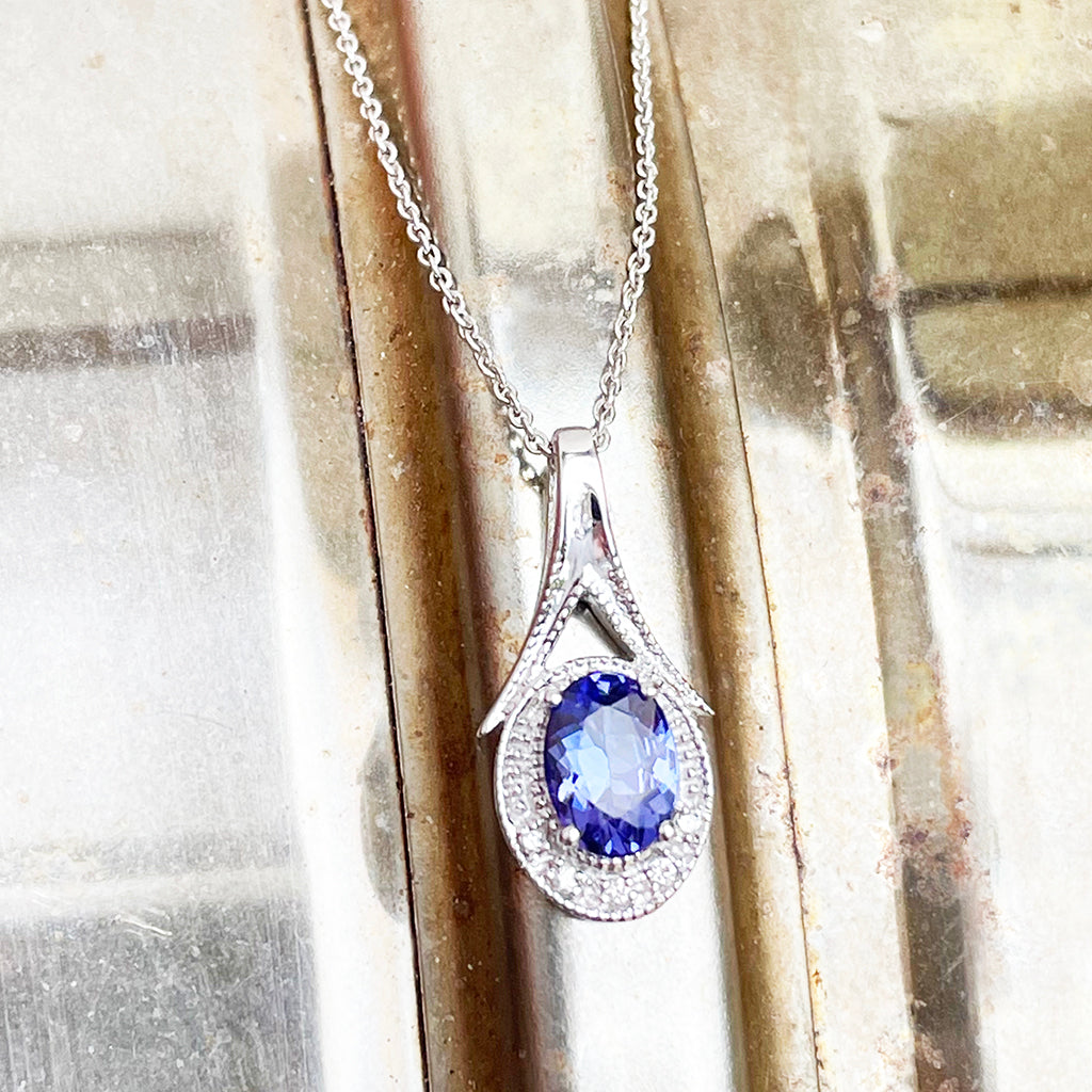 Unique Tanzanite Beaded Split Bale with Half Moon Diamond Pendant