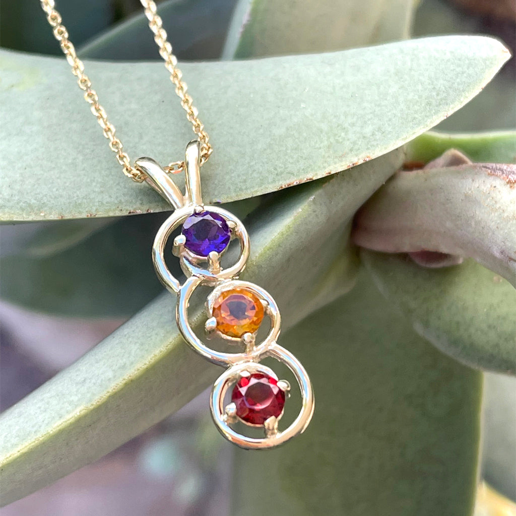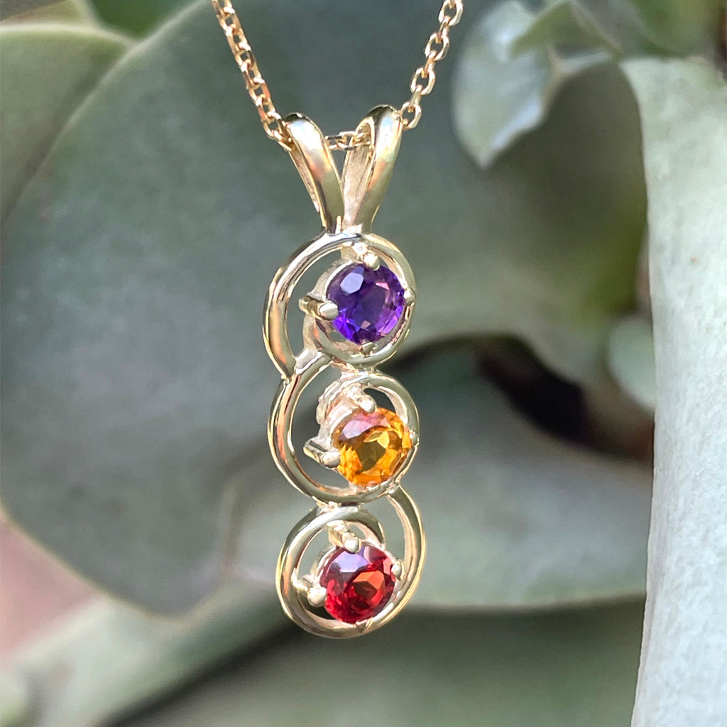 Garnet, Citrine and Amethyst Swirl Pendant in Yellow Gold