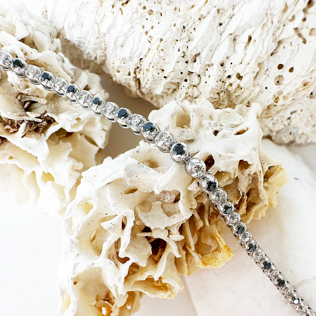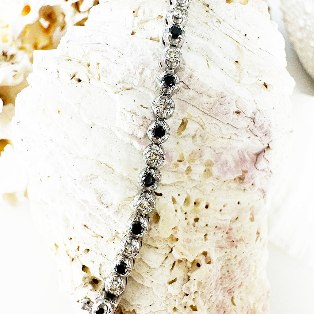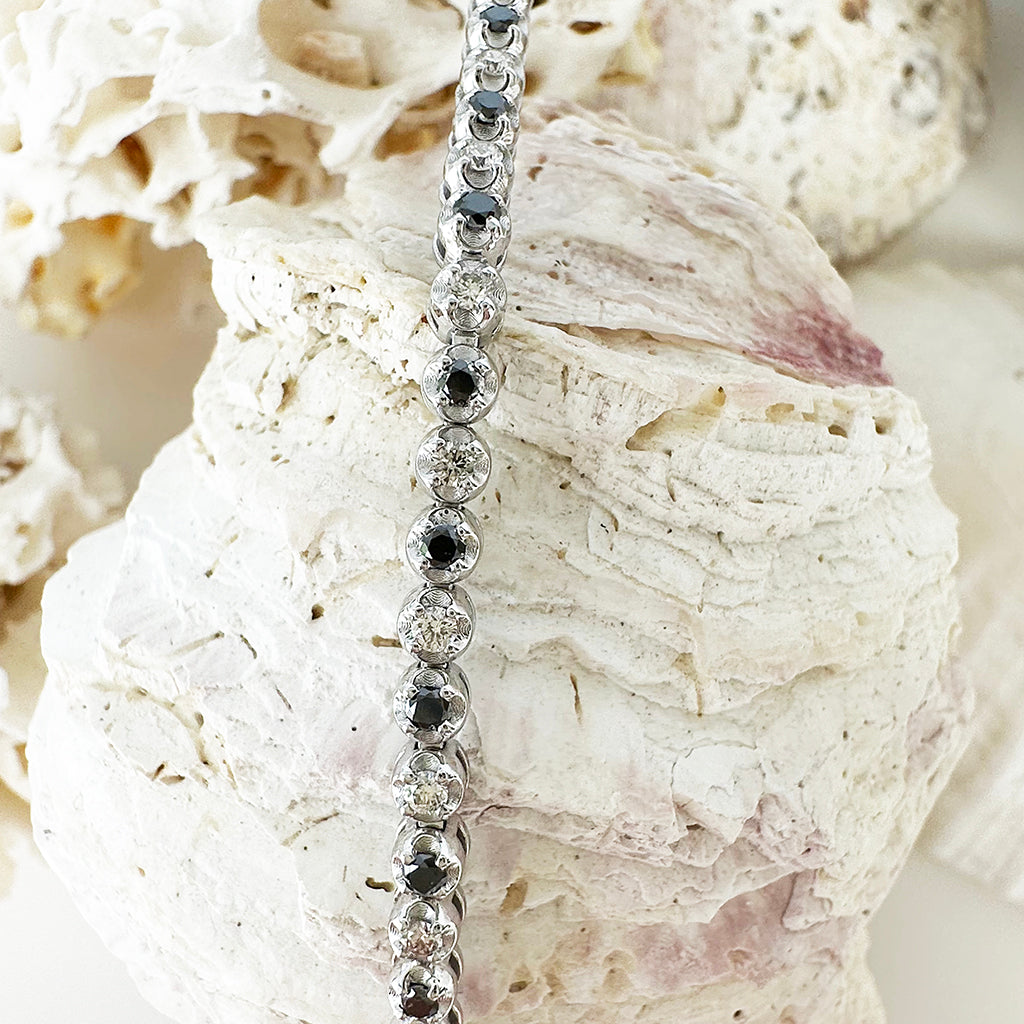Whimsical White Gold Four Claw Encased Black and White Diamond Bracelet