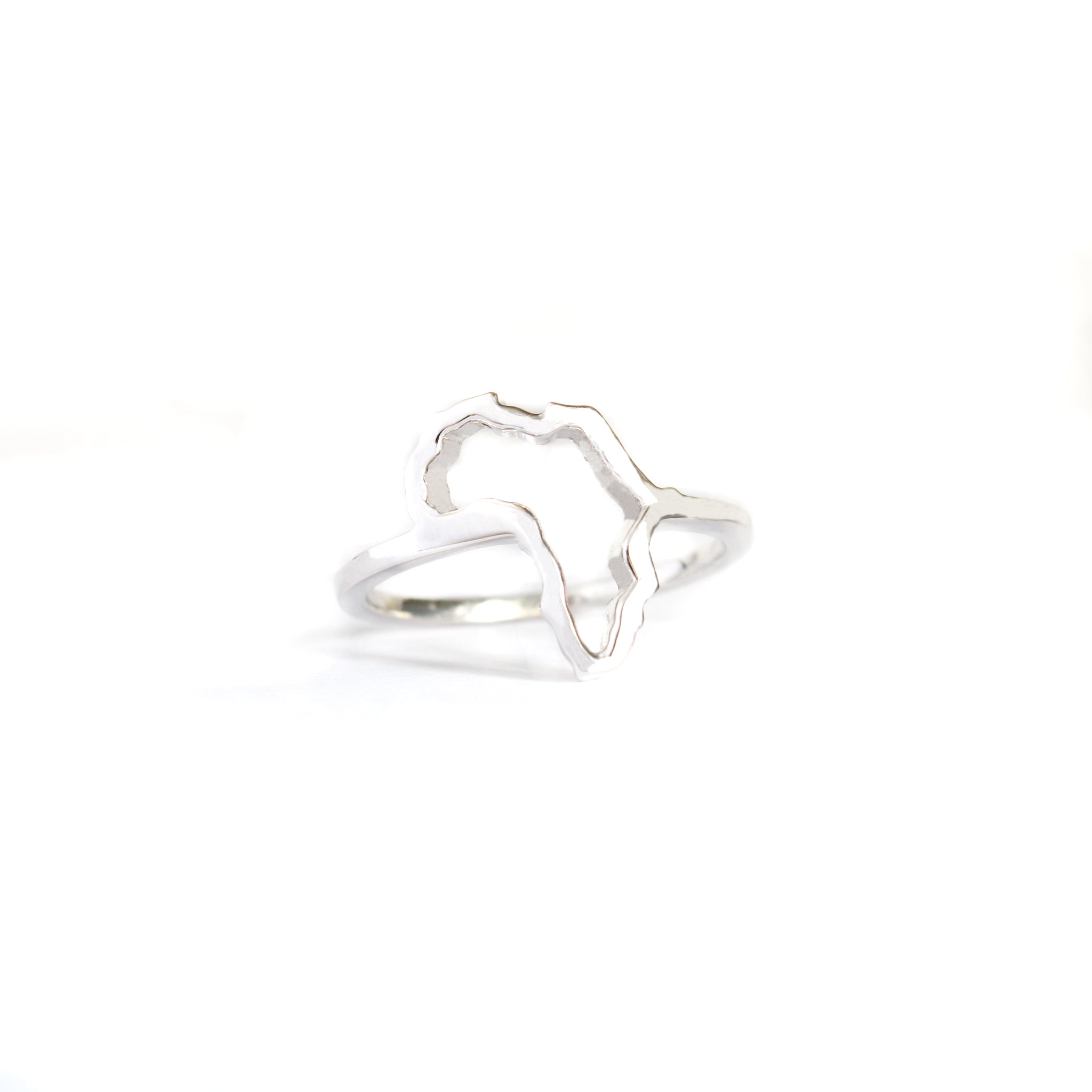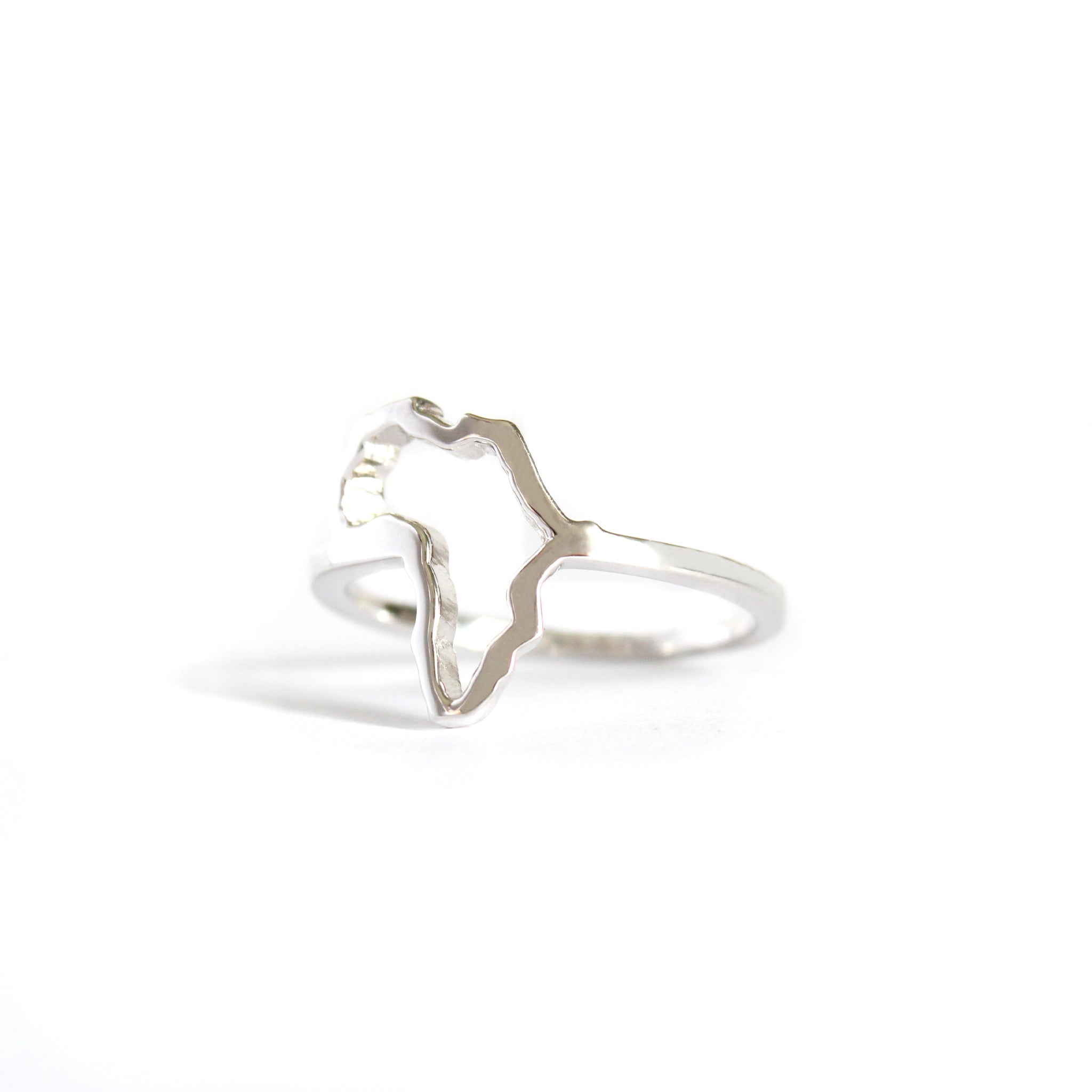 White Gold Africa Map Outline Ring