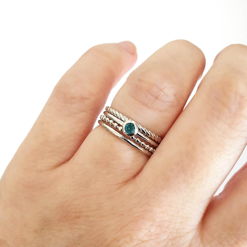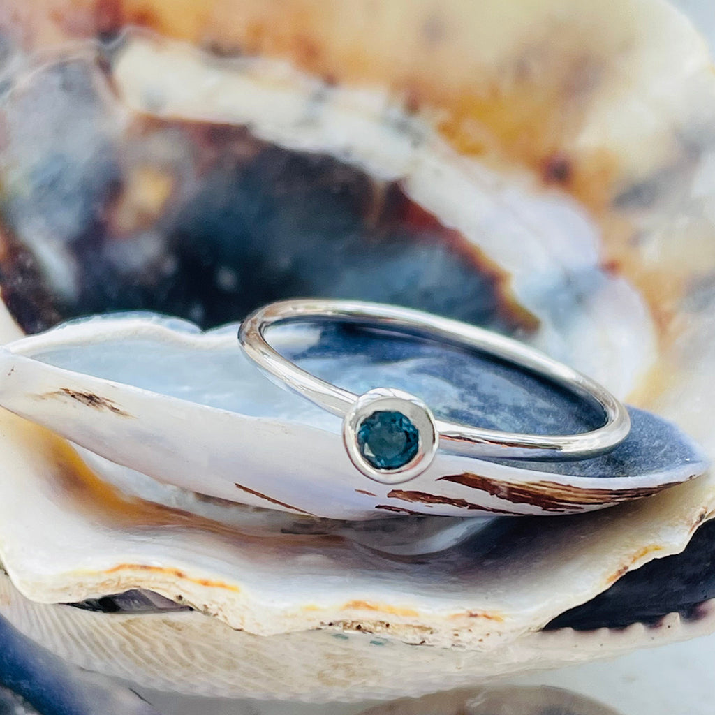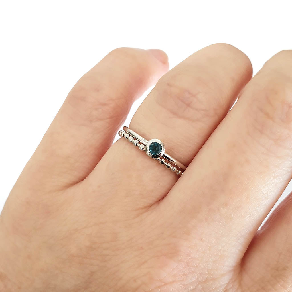 White Gold Bezel Set London Blue Topaz Stacking Ring