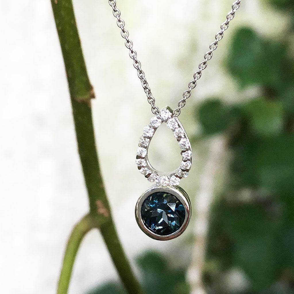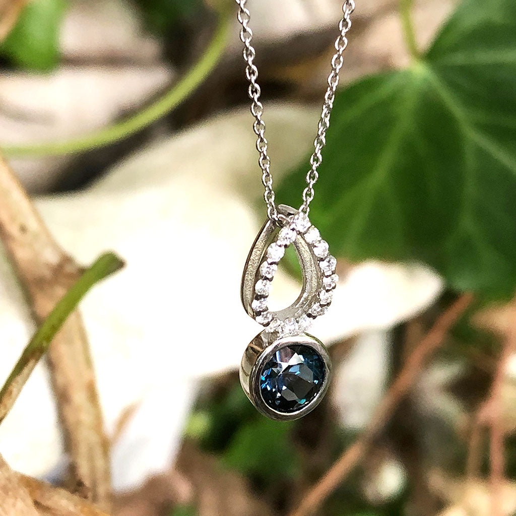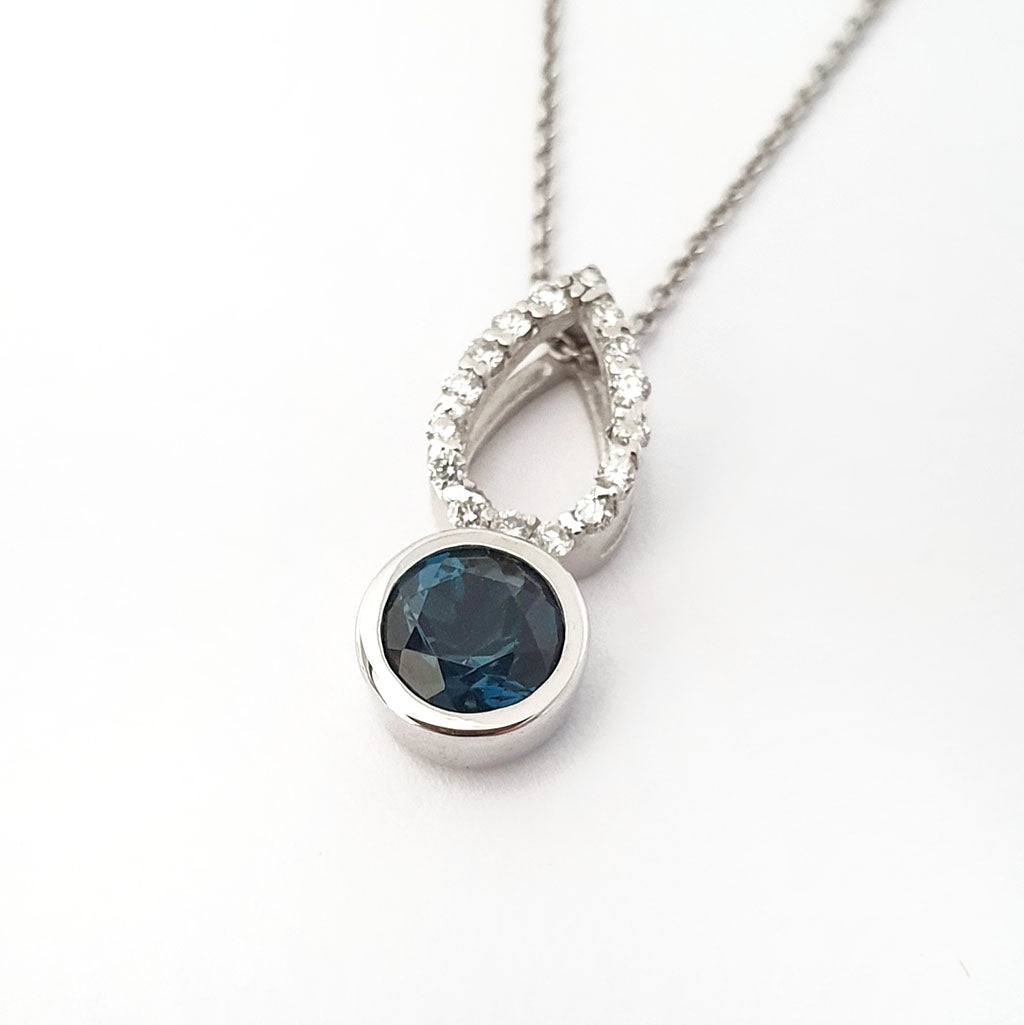 White Gold Diamond Pave Droplet and London Blue Topaz Pendant
