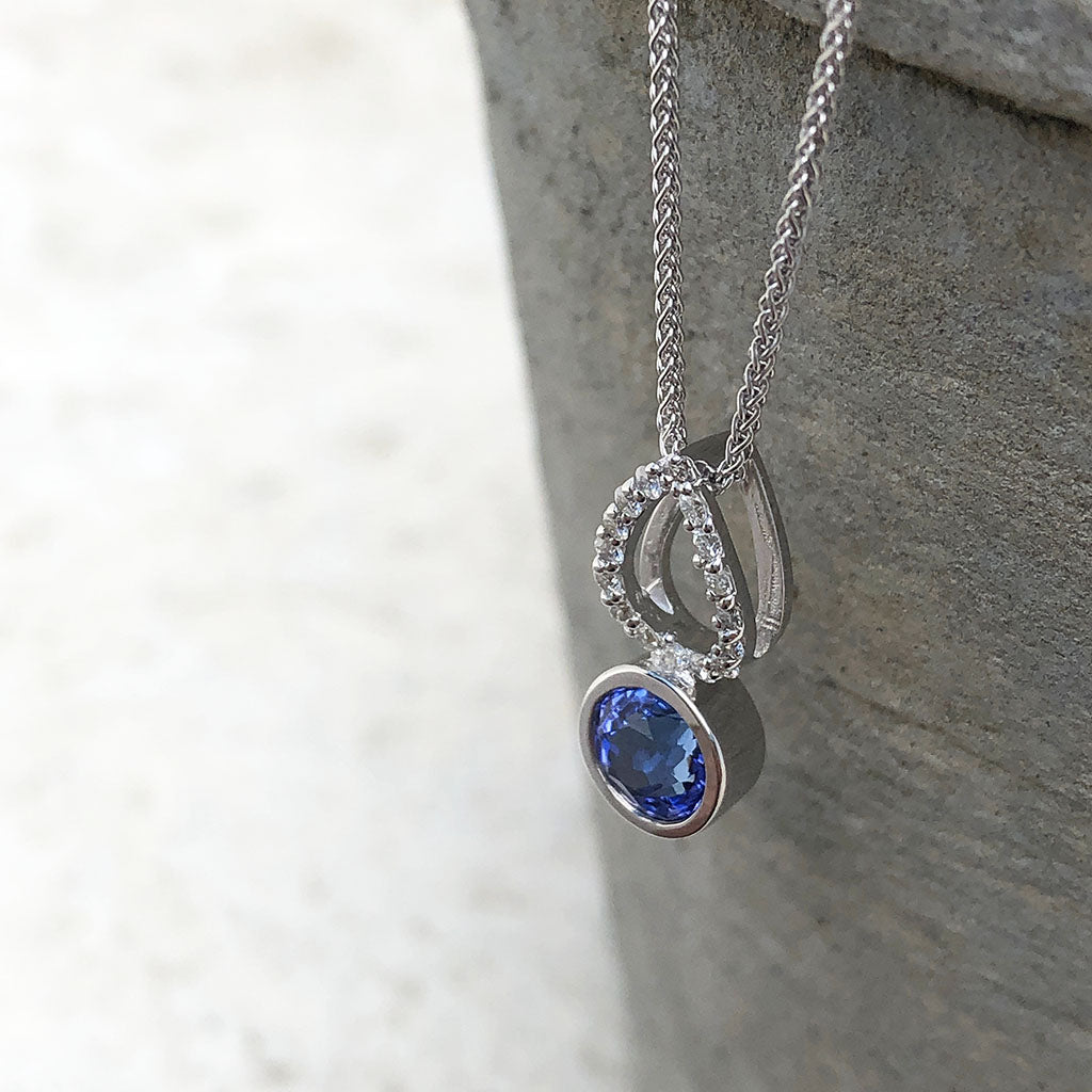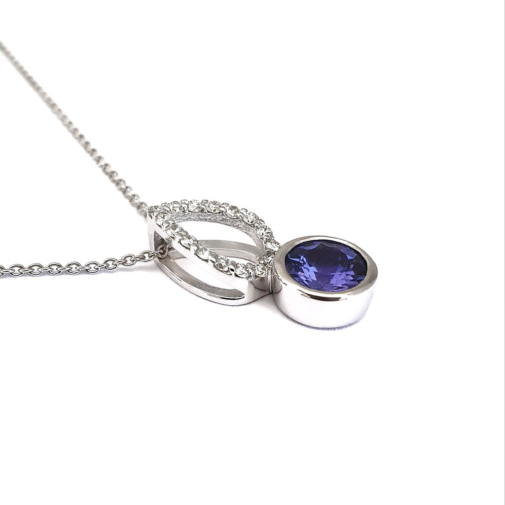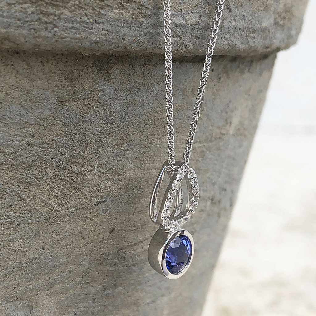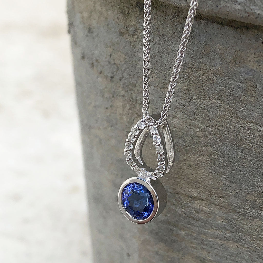 White Gold Diamond Pave droplet and Tanzanite Pendant