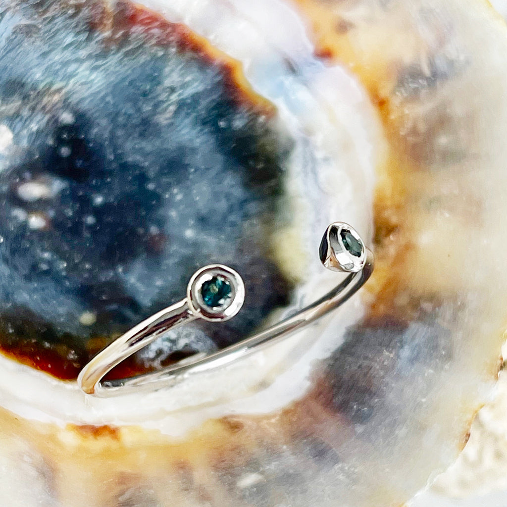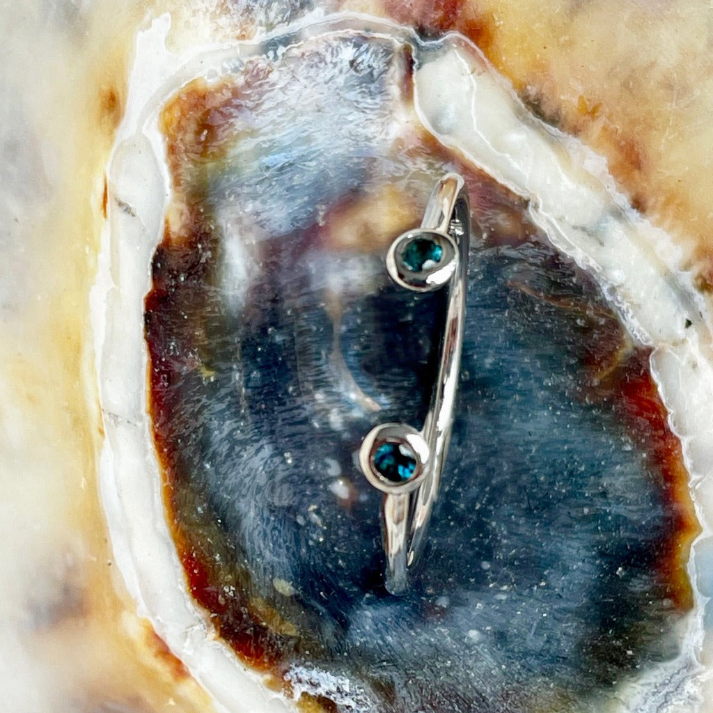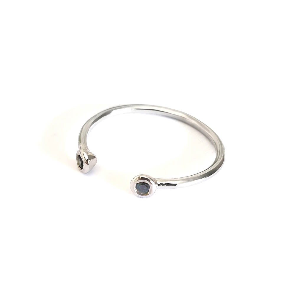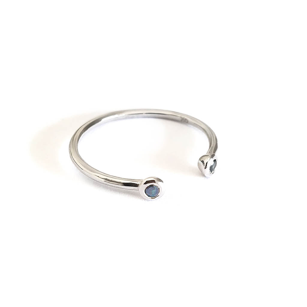 Open White Gold Double Bezel 2mm London Blue Topaz Stacking Ring