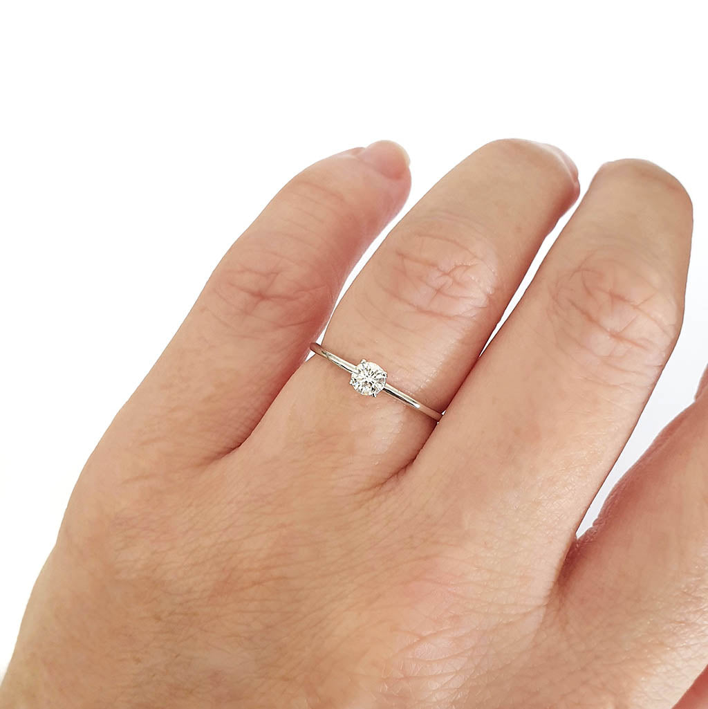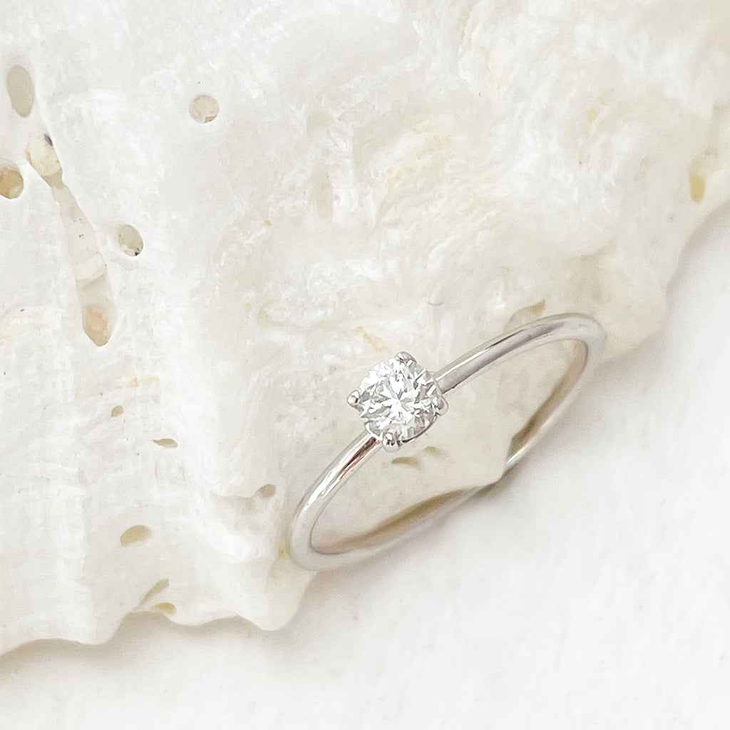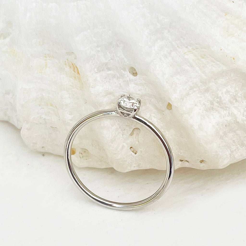 White Gold Raised Four Claw Diamond Stacking Ring