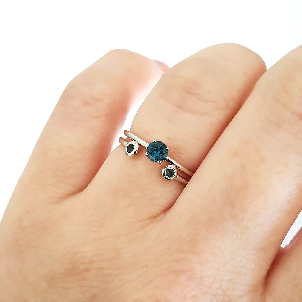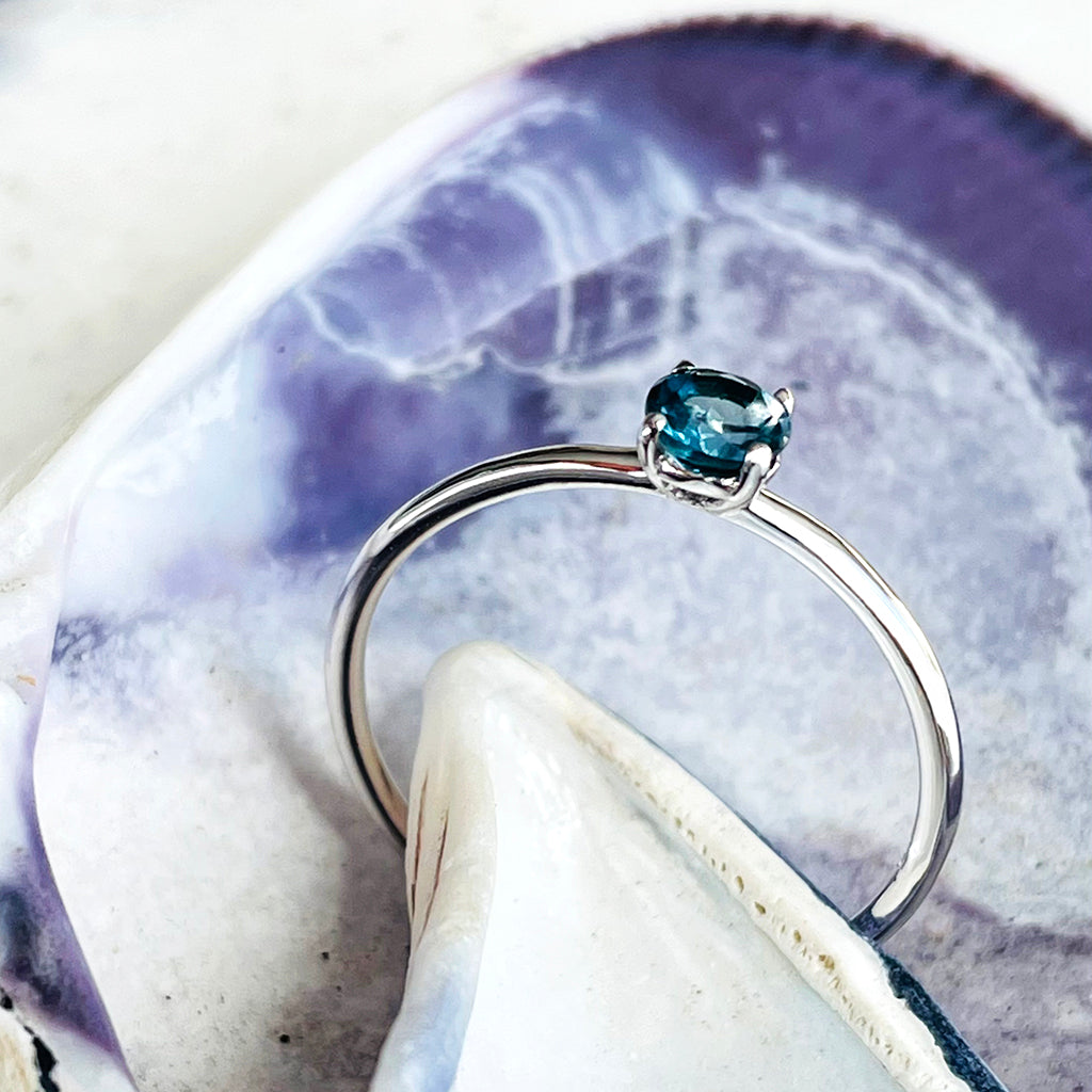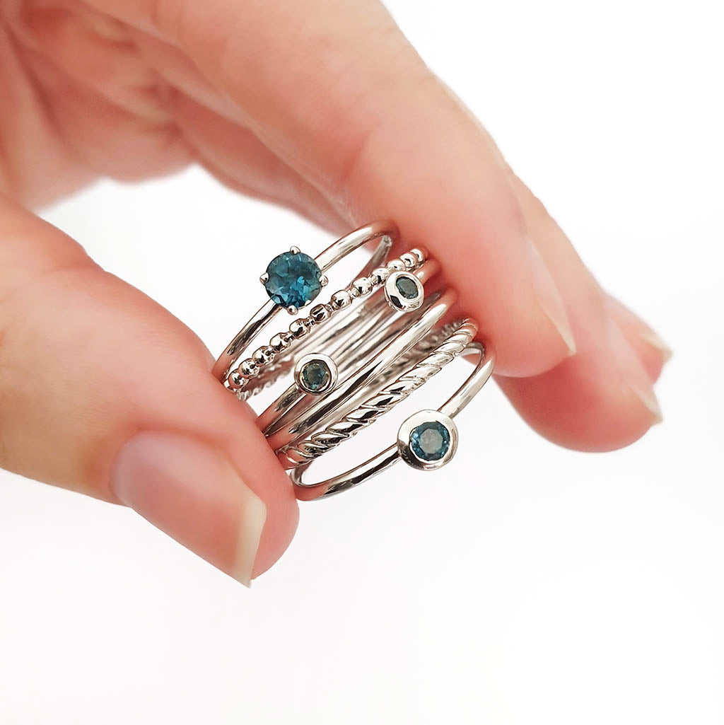 Still waters run deep, and if your serene exterior conceals intense passion, express yourself with a layered jewellery look that includes this exquisite London blue topaz stacking ring.