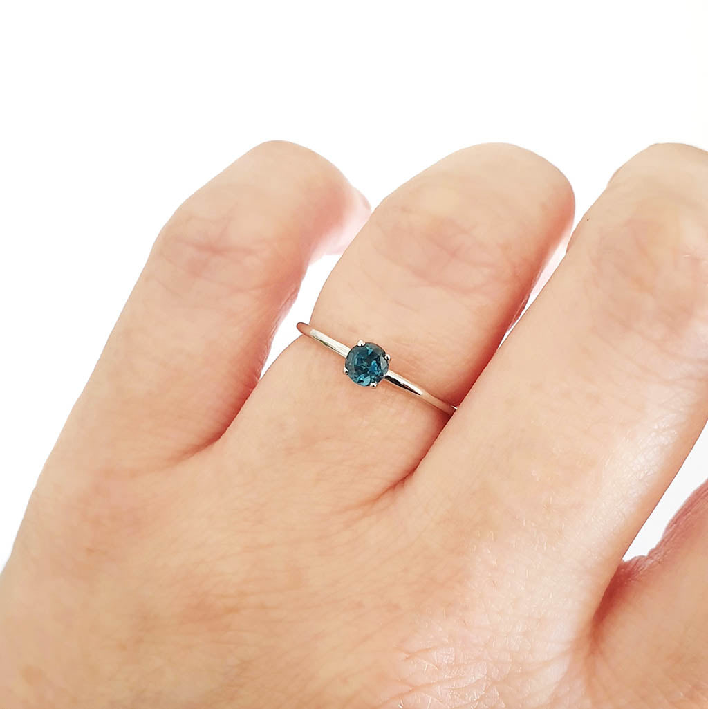 Centre Stone: London Blue Topaz; weight: 0.25ct: cut: round