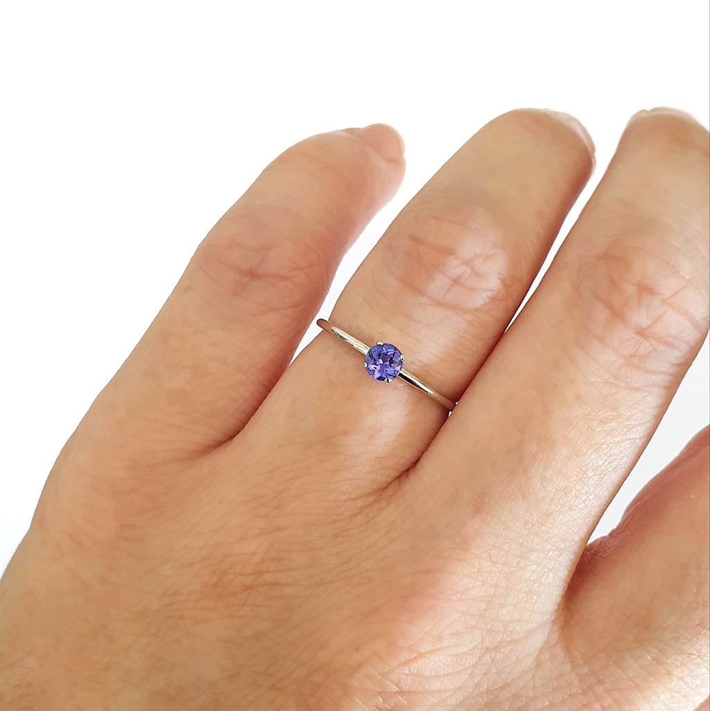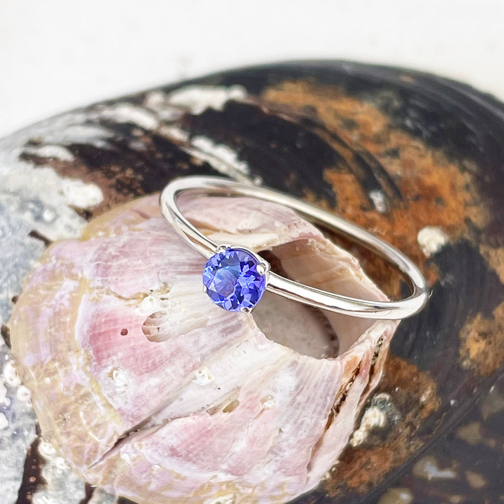 White Gold Raised Four Claw Tanzanite Stacking Ring