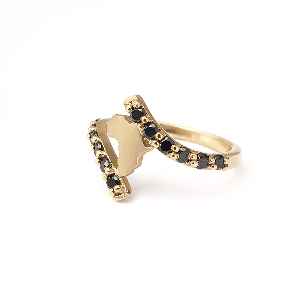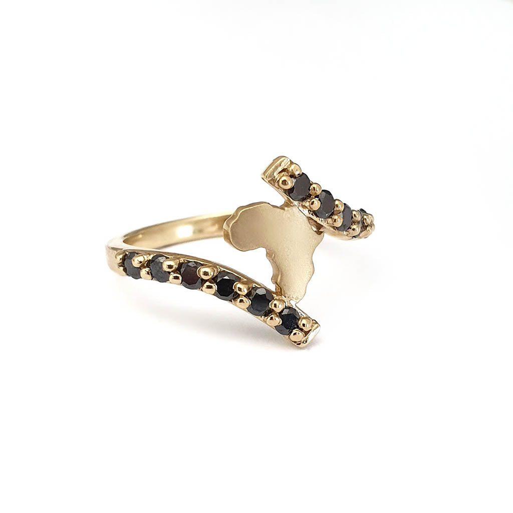 Gold Split Band Africa Map Ring with Black Diamond Embellishment
