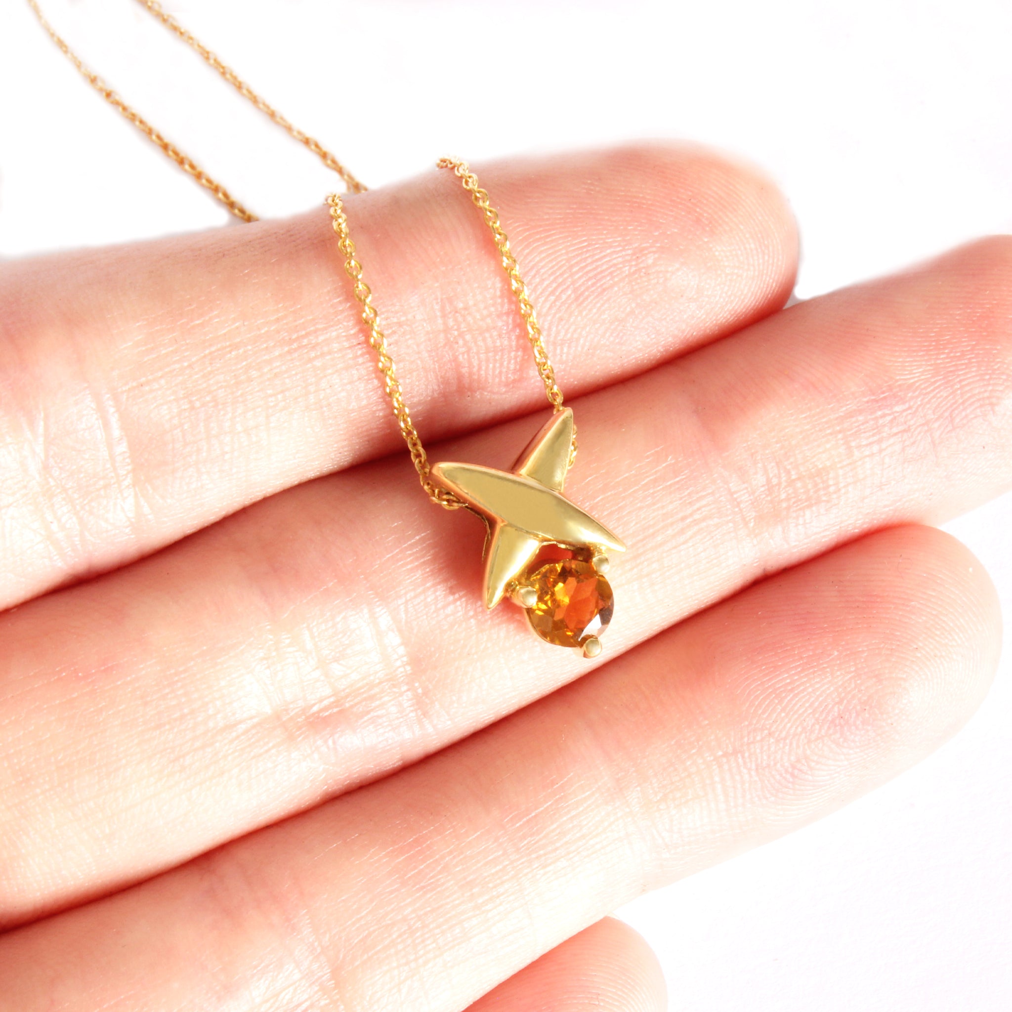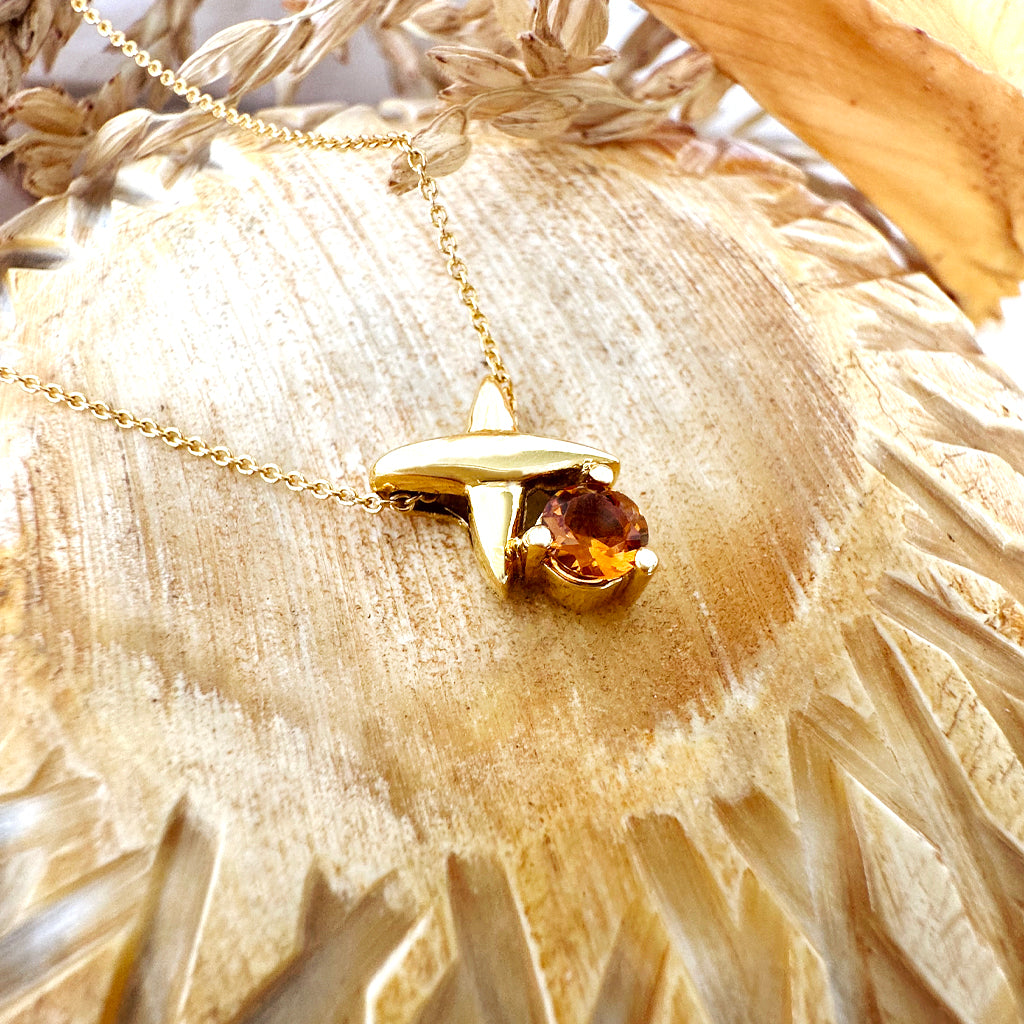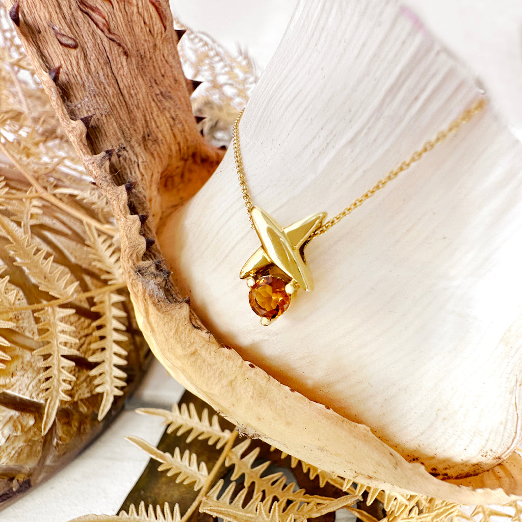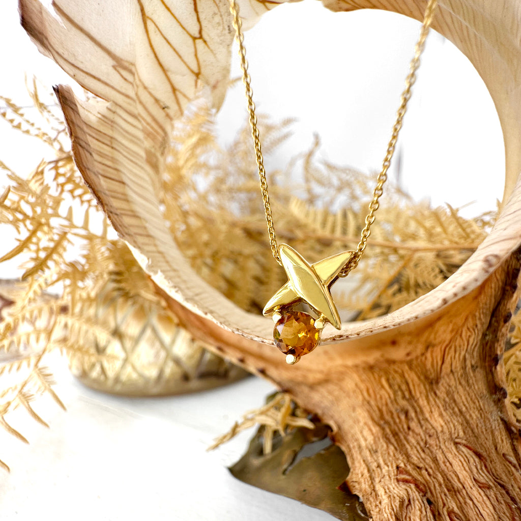 Yellow Gold Four Pointed Star Pendant with Round Cut Citrine