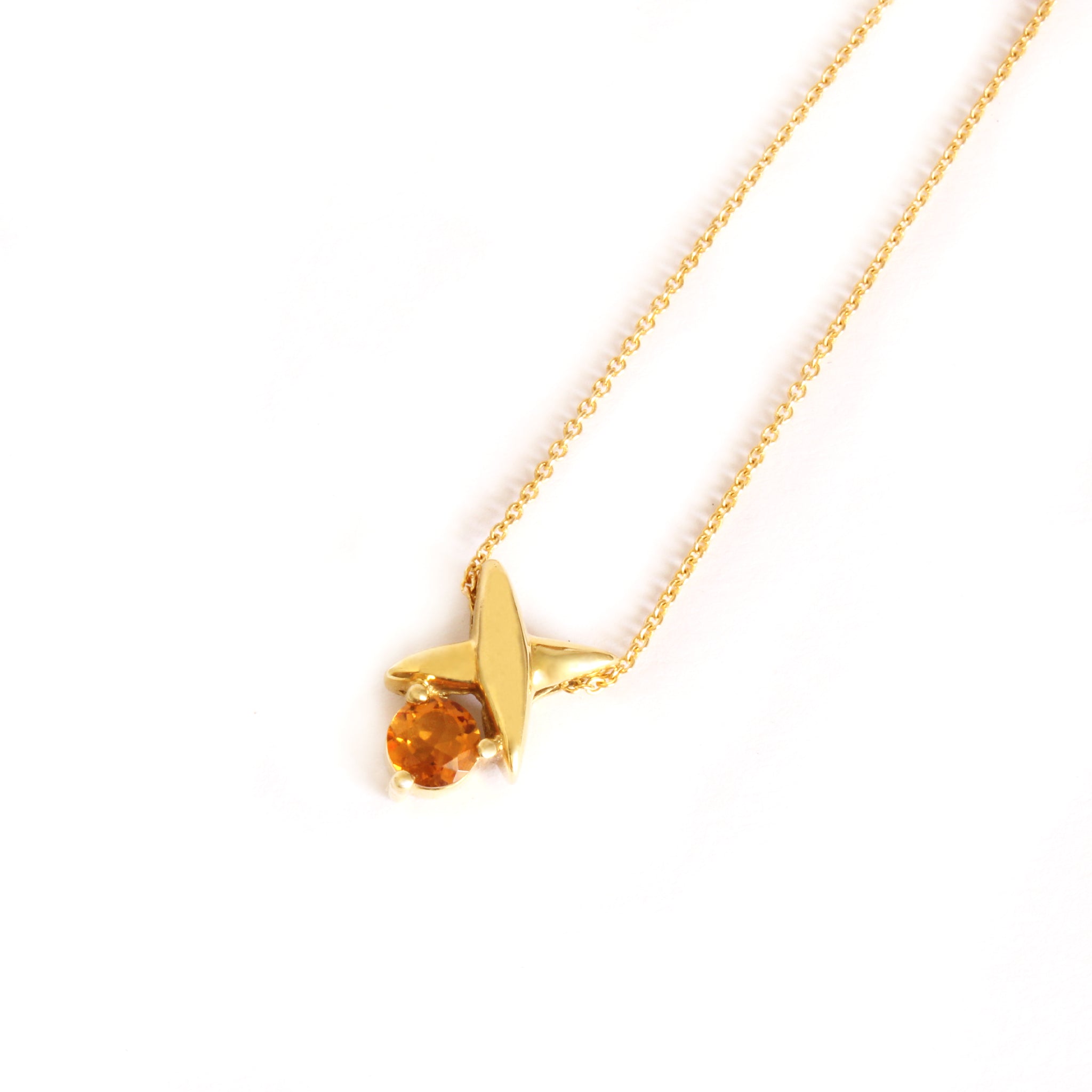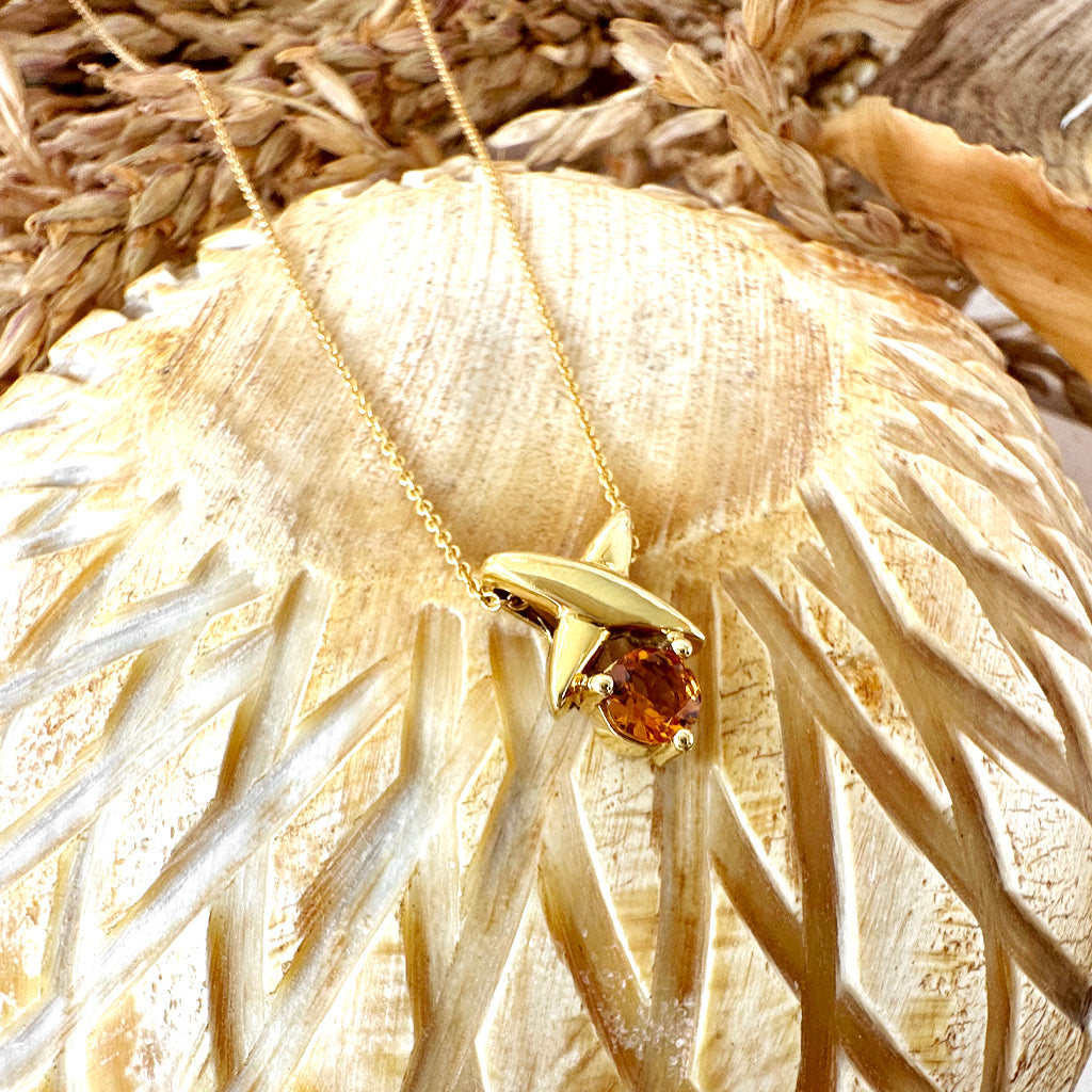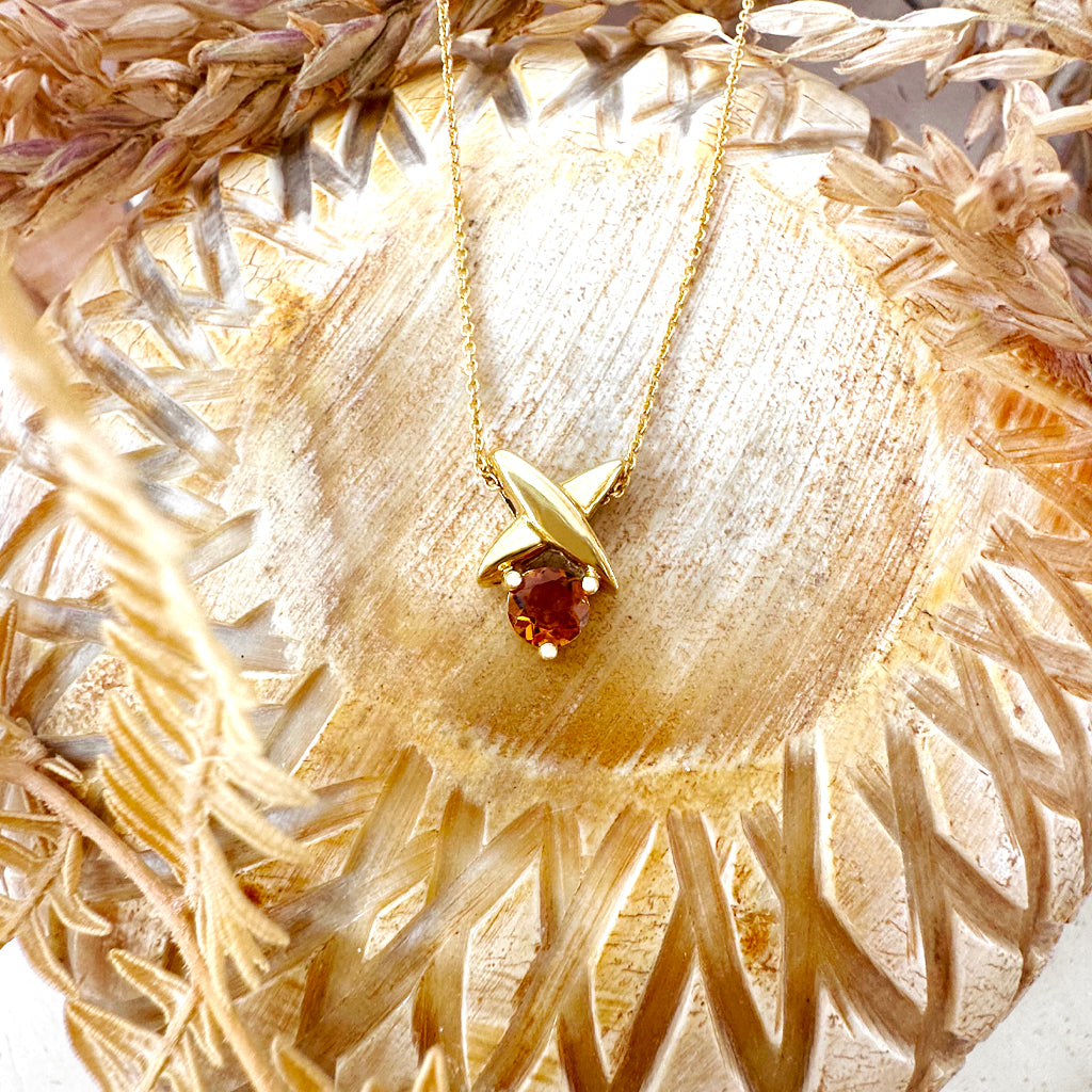 Yellow Gold Four Pointed Star Pendant with Round Cut Citrine