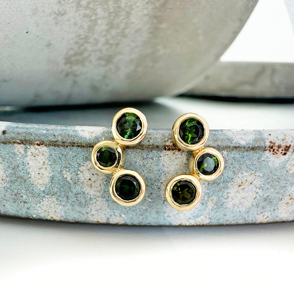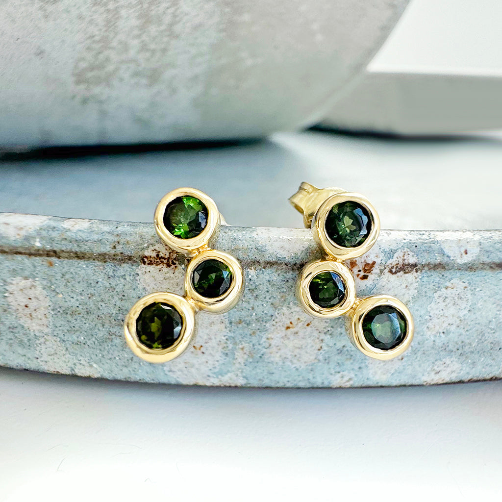 Yellow Gold Round Drop Green Tourmaline Earrings